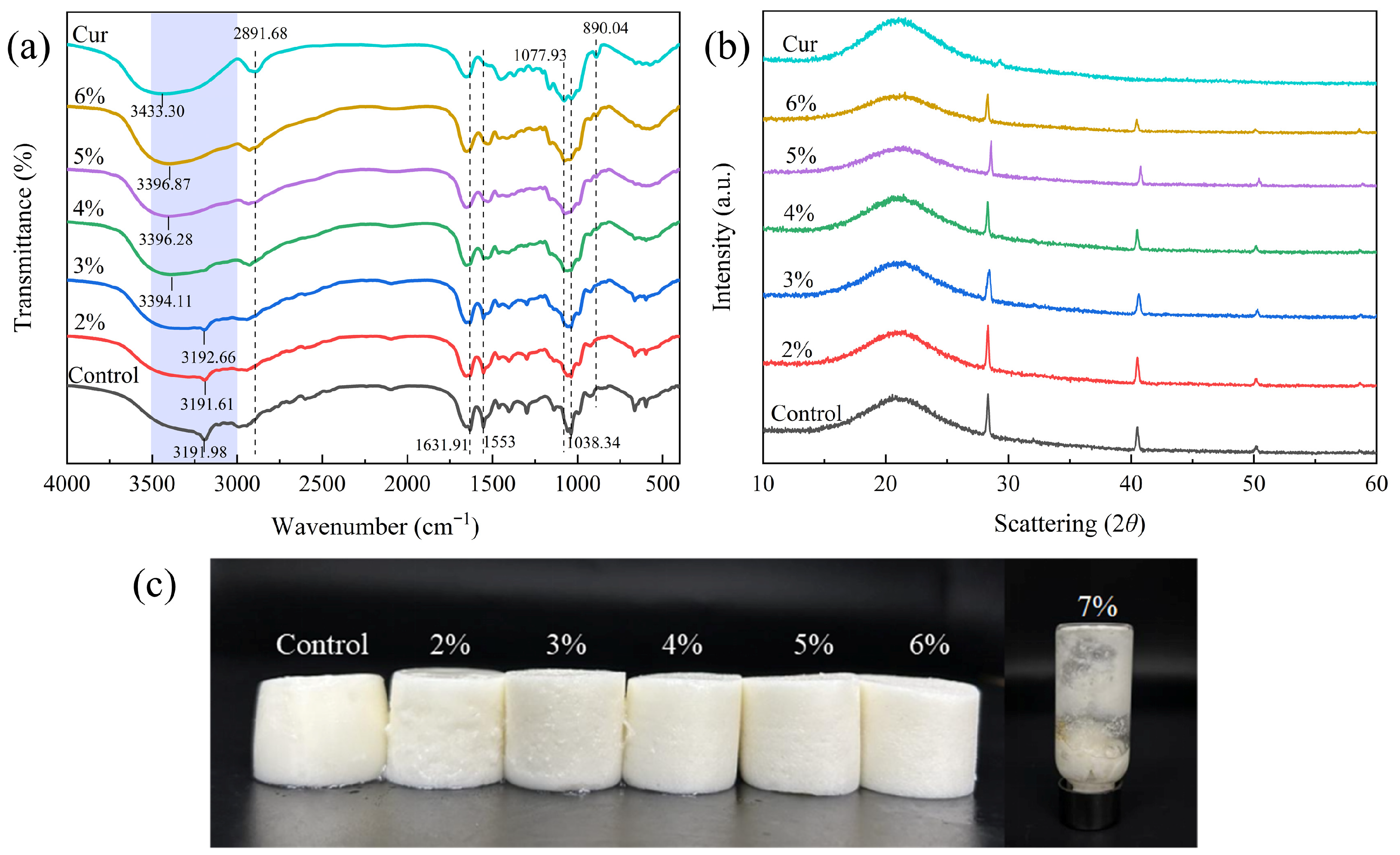 Concentration of Cur | Gel Strength (g·mm) | Hardness (g) | Springiness (cm) | Gumminess (g) | Chewiness (mJ) | Cohesiveness |