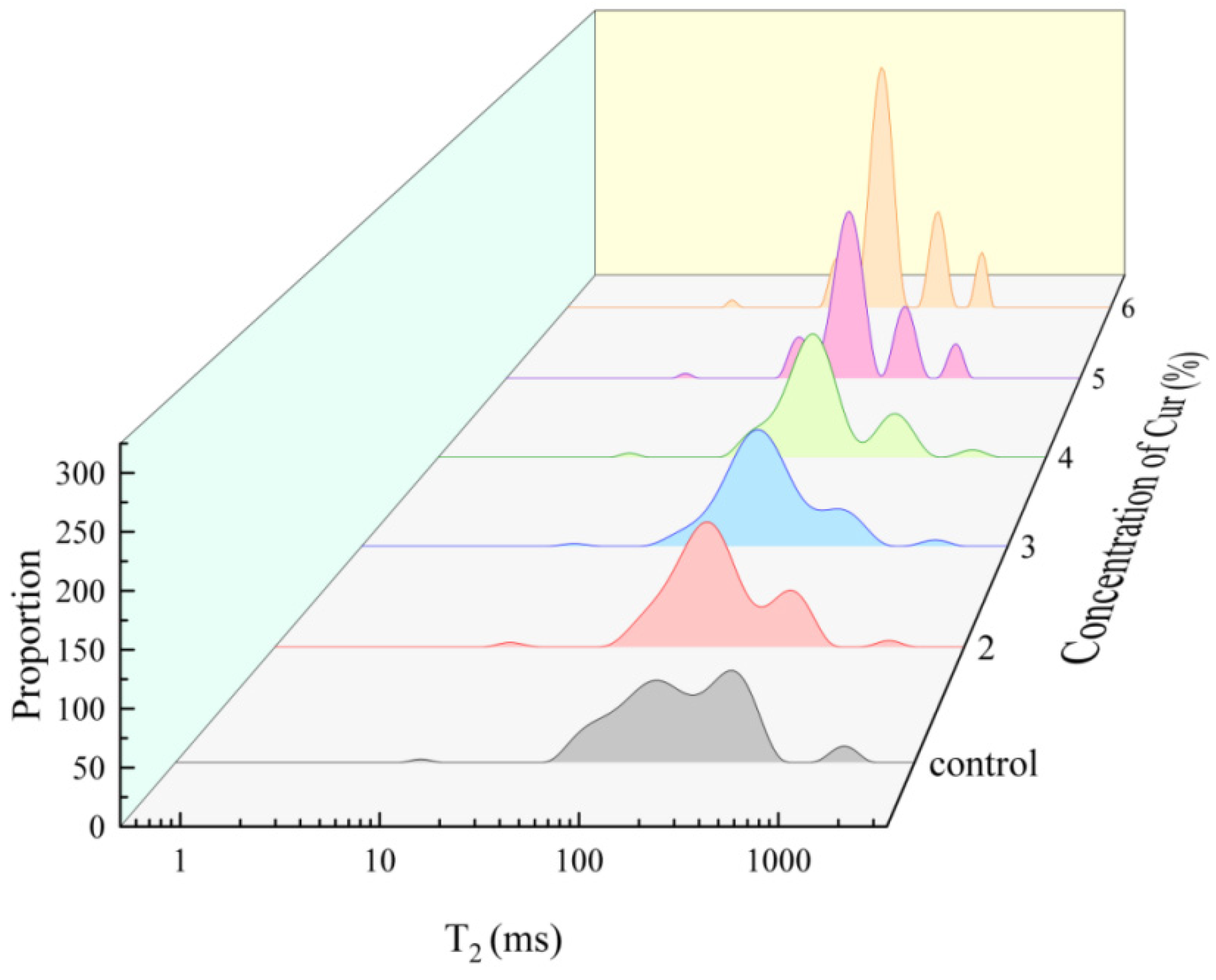 Concentration of Cur | T2 Relaxation Peak Relative Area (%) | ||