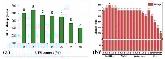 As discussed in Section 2.2, various activation methods have been explored to induce pozzolanic activity in river sediments. Incorporating pozzolanic materials prolongs setting time, enhances Al and Si reactions to form (N,C)–A–S–H gels, improves hydration and mechanical properties, lowers cost, and reduces carbon emissions [,,]. Activation is thus an effective way to enhance sediment concrete performance and will not be elaborated here.