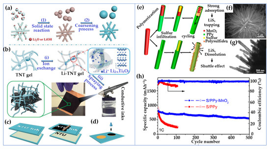 - Chen, X.; Huang, H.; Pan, L.; Liu, T.; Niederberger, M. Fully Integrated Design of a Stretchable Solid-state Lithium-ion Full Battery. Adv. Mater. 2019, 31, 1904648. [Google Scholar] [CrossRef]