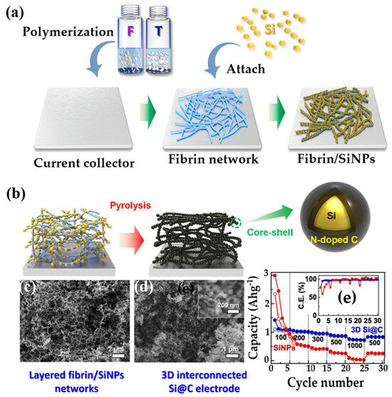 - Woo, H.; Park, K.; Kim, J.; Yun, A.J.; Nam, S.; Park, B. 3D Meshlike Polyacrylamide Hydrogel as a Novel Binder System via in Situ Polymerization for High-Performance Si-Based Electrode. Adv. Mater. Interfaces 2020, 7, 1901475. [Google Scholar] [CrossRef]