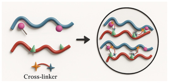 Two primary strategies are used in chemical crosslinking: blending, where polymers are physically mixed and then crosslinked, and grafting, where functional groups are covalently attached to polymer backbones [70,79] (Scheme 3).