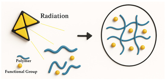 Schematic illustration of hydrogel synthesis using the radiation crosslinking method. Adapted and redrawn with permission from [70], Springer Nature 2021.