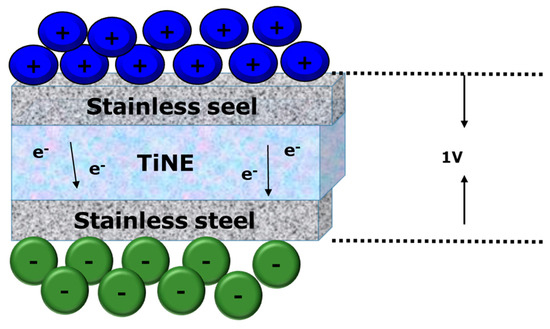 A material which can create a gel-like structure at the nanoscale is defined as nanogilator and usually comprises nanoparticles with a porous matrix that can retain liquids, including ionic liquids, in place. These properties enable nanogelators to enhance electrolytes and develop their efficiency and stability in a range of applications, for example, medication systems and batteries. Nanogelators intend to increase system efficiency and safety by offering a stable path for ion transport. As they can change their structure according to the ionic liquids being utilized because of their characteristics like pore size and ionic conductivity, the adaptability is significant for the energy storage and delivery system. Whereas with the incorporation of titanium oxide (TiO2) as a primary component, the nanogelator formed as a specific type of Ti-nanogelator. These characteristics greatly lower the possibility of fire or explosion, which is a problem of the traditional liquid electrolyte used in lithium batteries. It can form a porous structure which can bind ionic liquids and form a solid electrolyte for the lithium-ion battery. The porous structure, nonflammability, and self-regulation are advantageous properties of Ti-based nanogelators [88,89]. The formation of Ti-nanogelator follows a specific synthesis process where the ionic liquid and titanium-based matrix are involved. In the synthesis process, the ionic liquid (IL) serves as an electrolyte component where the (IL) holds the cations and anions that are significant for nanogel electrochemical properties. During the formation of the nanogelator, the ionic liquid acts as a template solvent. Ionic liquid molecules are integrated into the titanium nanogel’s matrix through self-assembly, creating stable composite materials as they arrange within the titanium framework, as shown in Figure 7. The Ti-nanogelator matrix has a porous structure with particle sizes ranging from 5 to 60 nm, providing channels that enhance ion transport within the electrolyte, which is important for battery performance [88]. The Ti-nanogelator demonstrates different phases depending on their molar ratio of the ionic liquid to the nanogelator. However, the Ti-nanogelator pore size can also be adjusted through the formation process. The nanogelator matrix average pore diameter can be changed to better transport ions as the size of the cations in the ionic liquid grows [90]. Therefore, by using ionic liquids to self-assemble, the Ti-nanogelator creates a stable, porous structure which is ideal for ion transport, making it appropriate for use in lithium batteries.