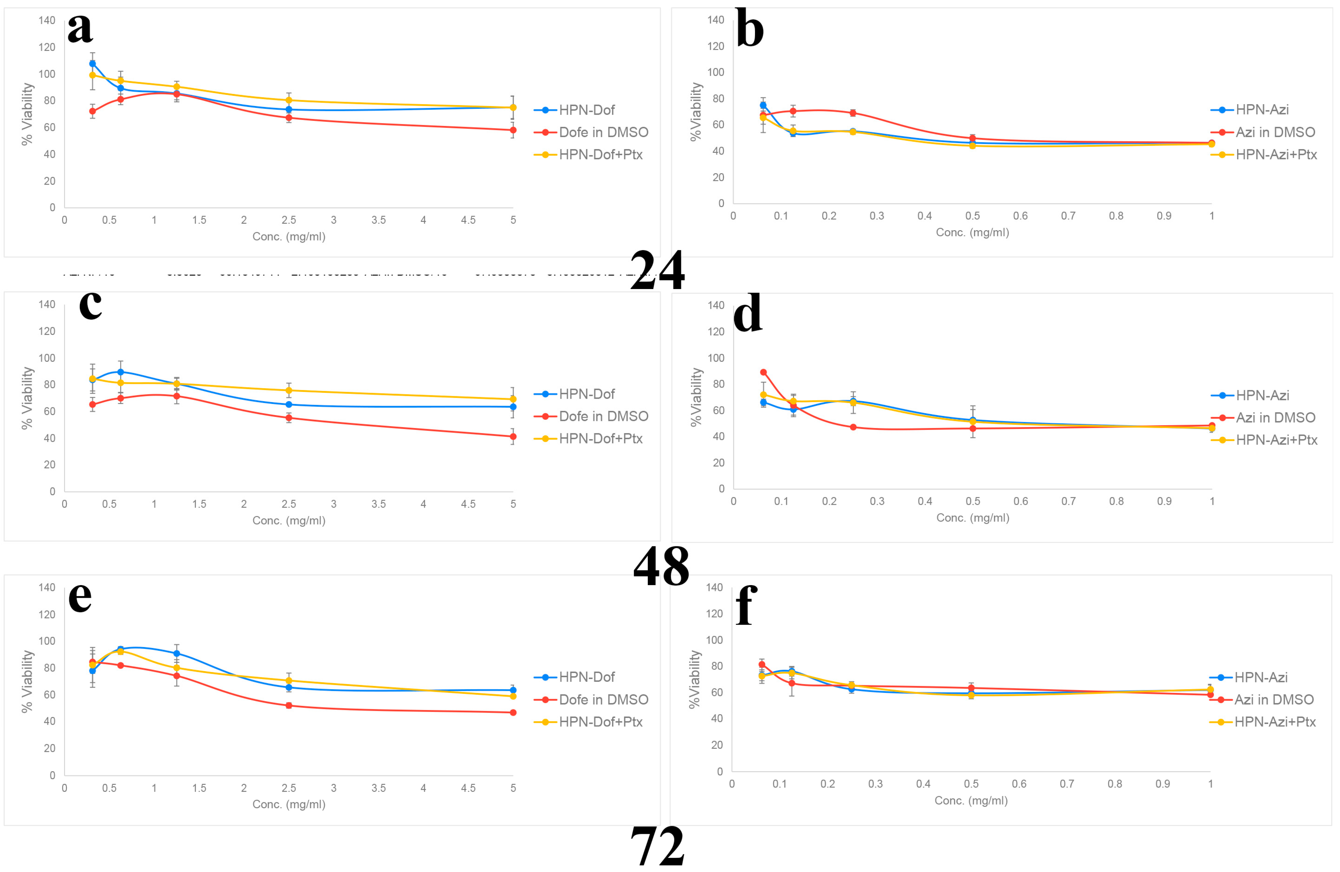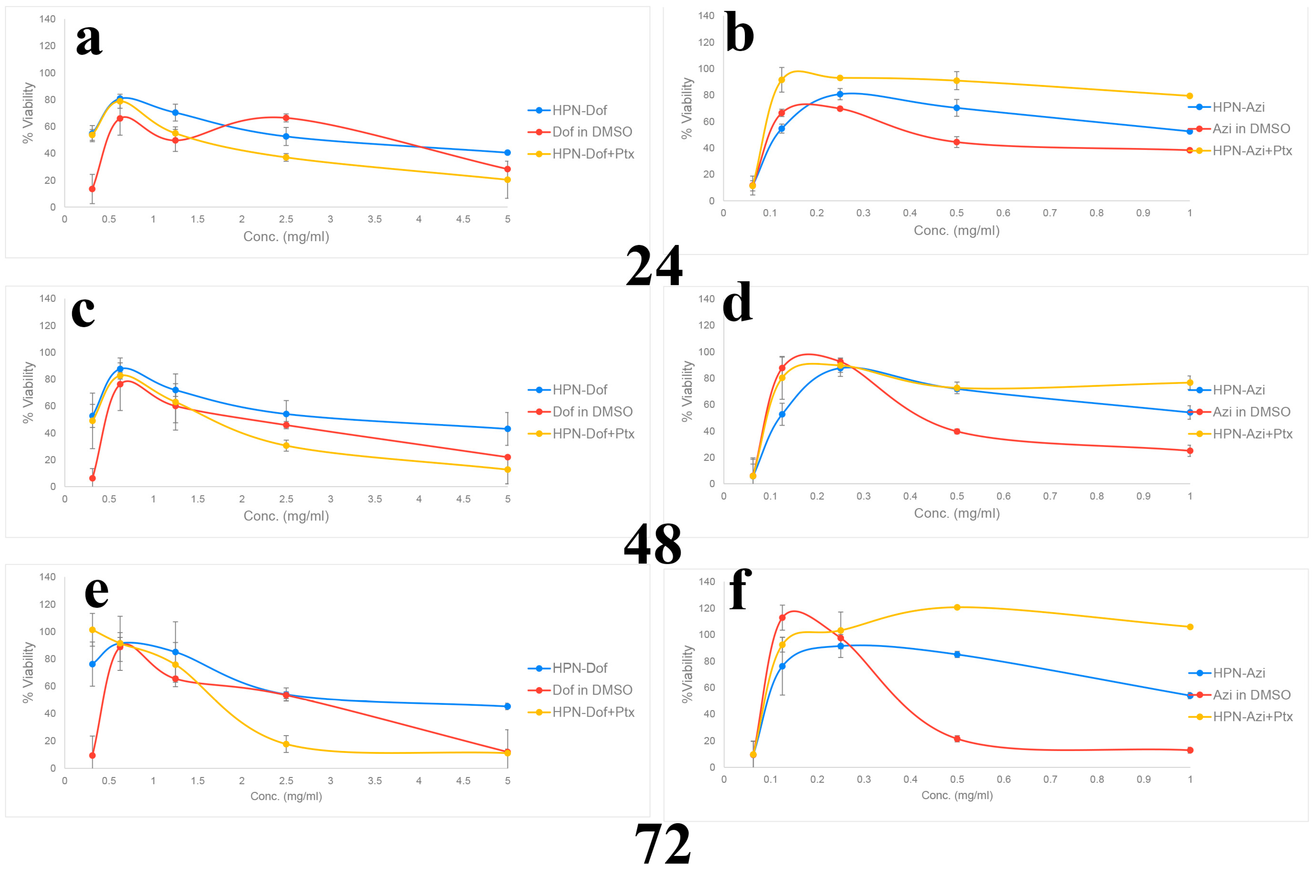 4.2.7. In Vitro Cytotoxicity and Anticancer Efficacy of Dof-HPN and Azi-HPN