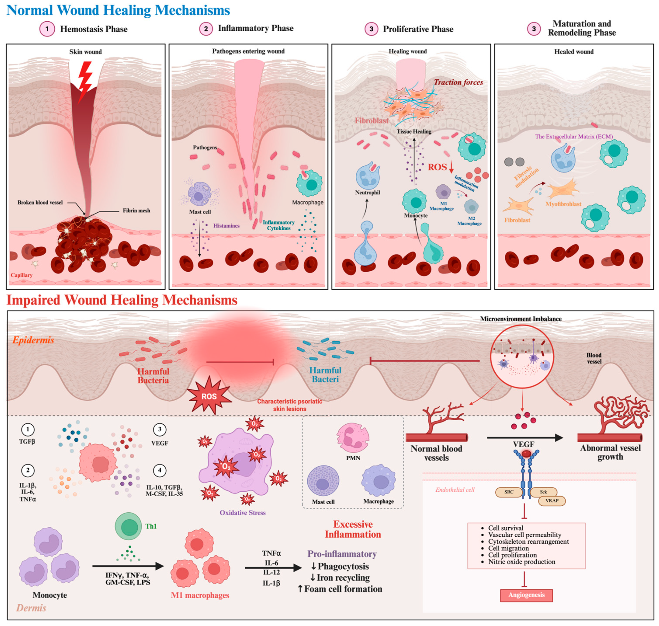 2. Pathogenesis of Impaired Skin Wound Healing and Therapeutic Targets
