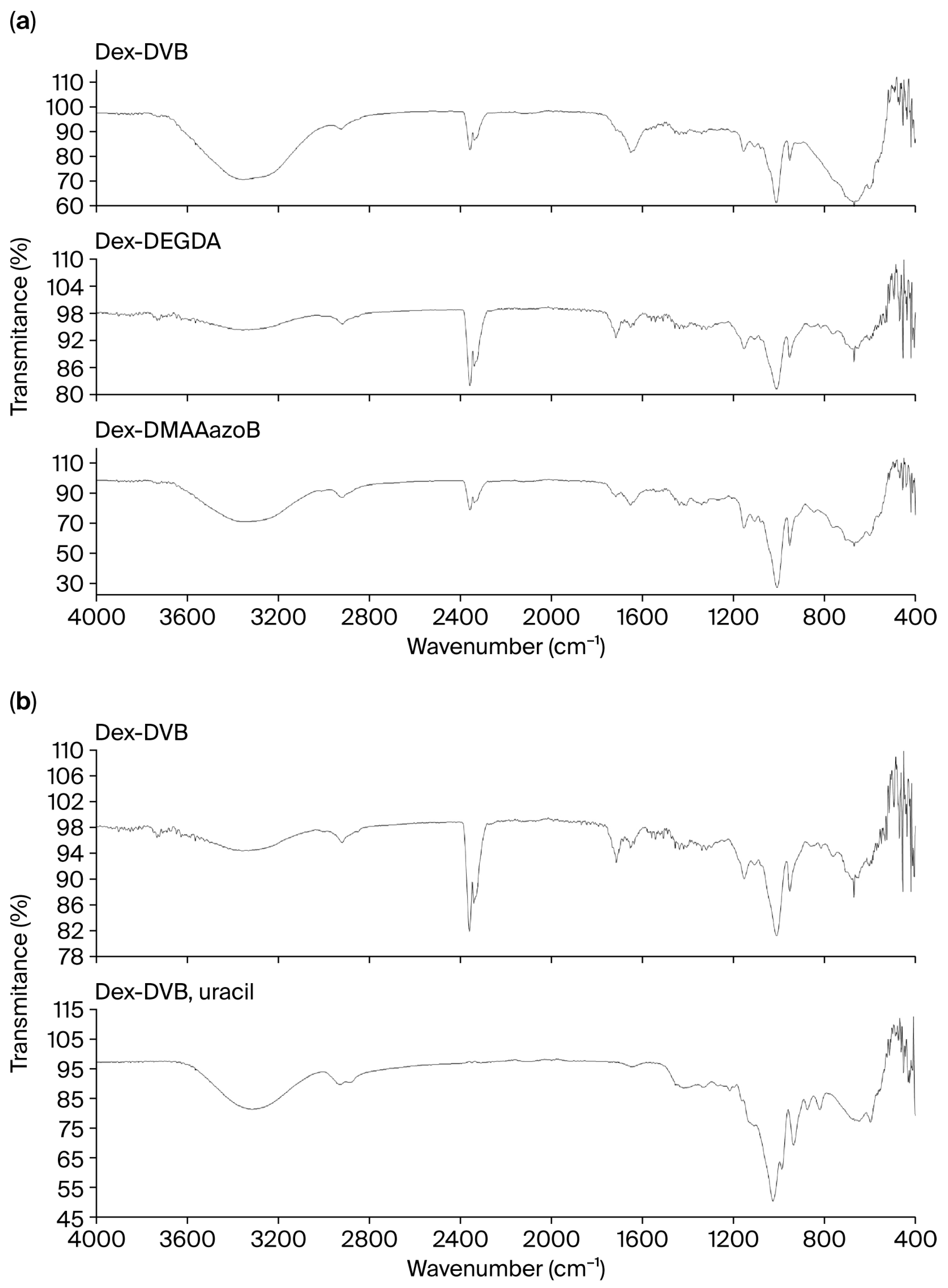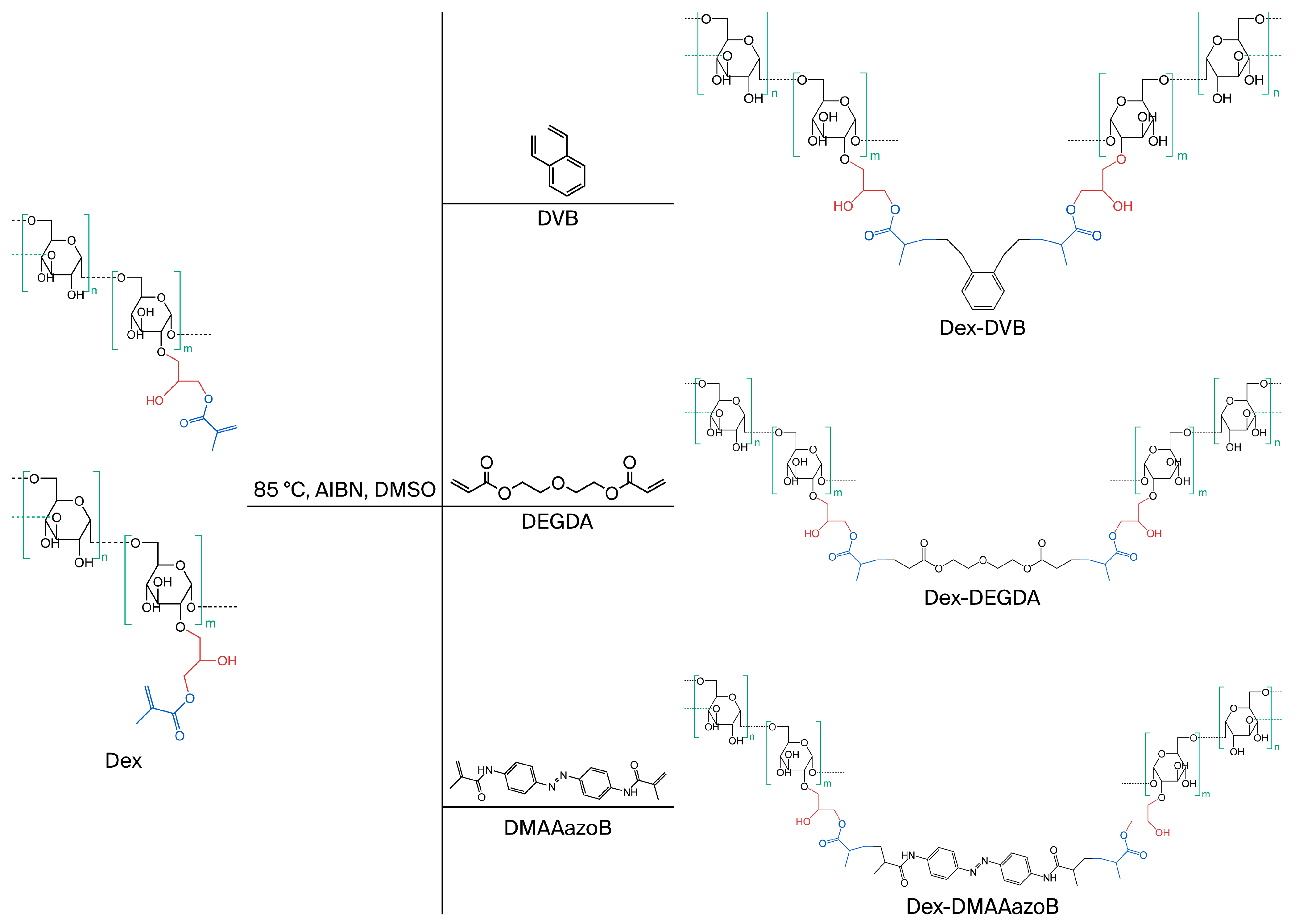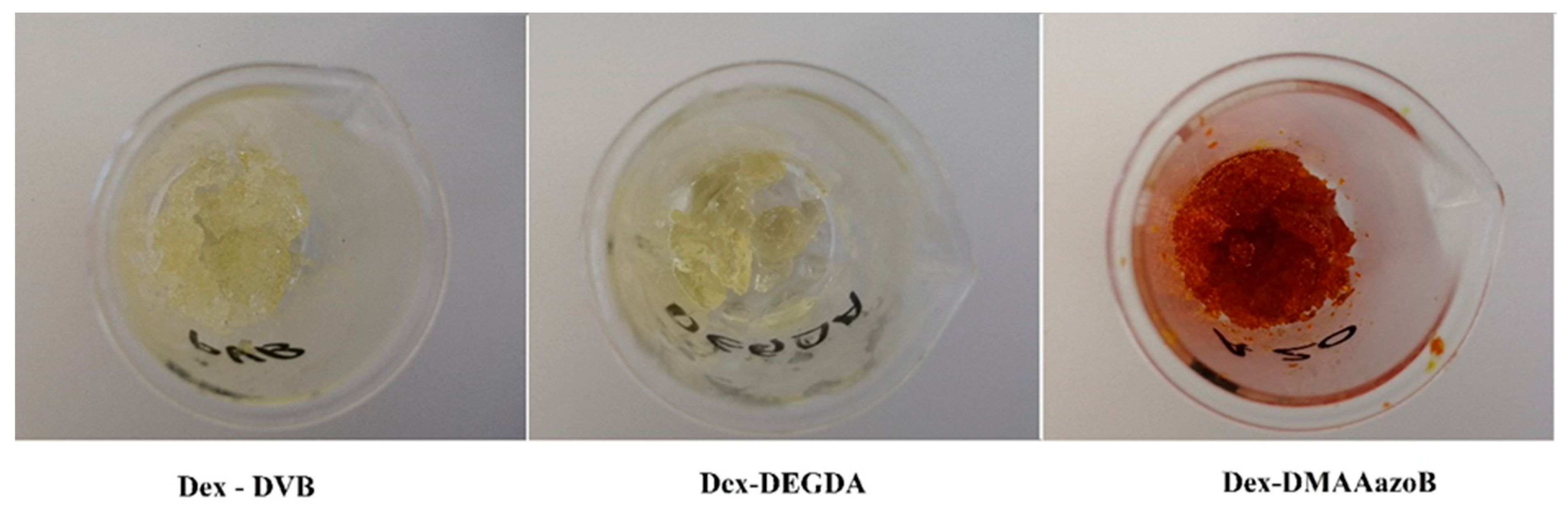 | Samples | Dex-MA, g | DVB, g | DEGDA, g | DMAAazoN, g | AIBN,g | Uracil, g |