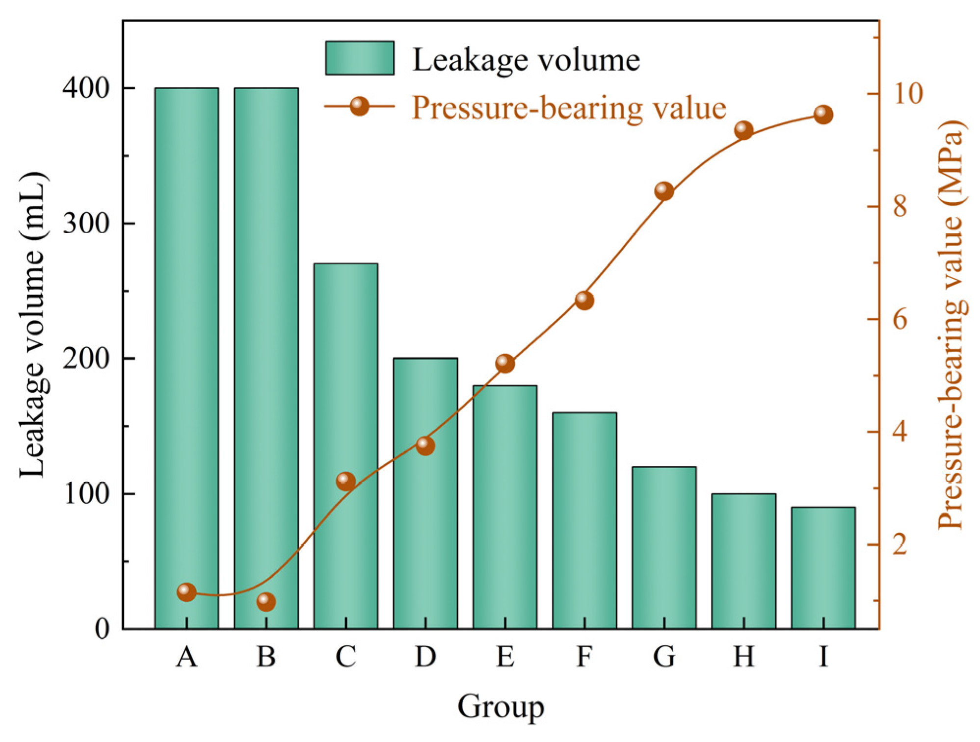 Table 4. Based on the pressure-bearing values and leakage volumes presented in