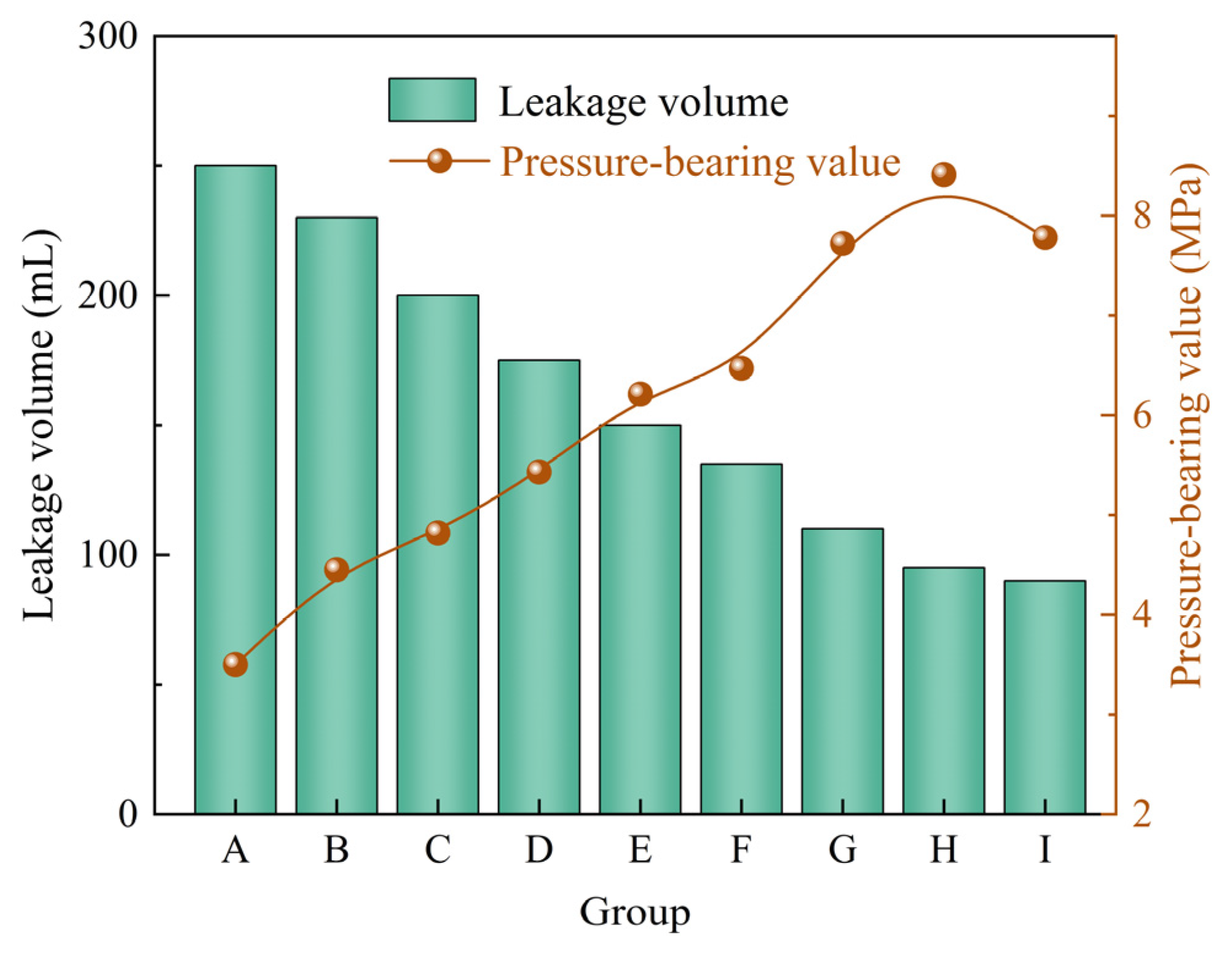 Table 7. Based on the pressure-bearing values and leakage volumes presented in