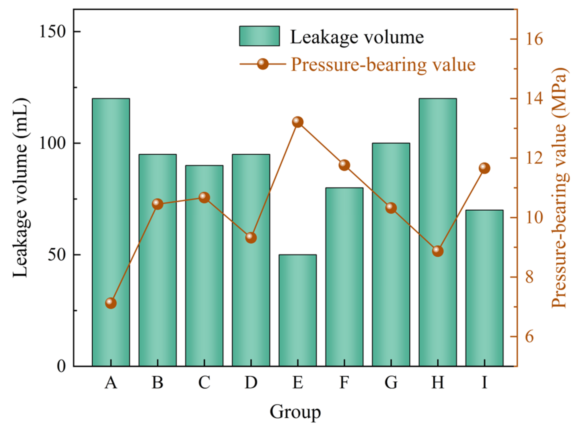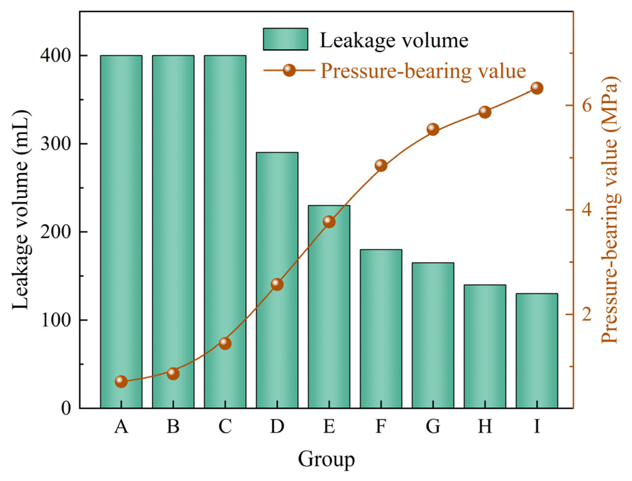 Table 6. Based on the pressure-bearing values and leakage volumes presented in