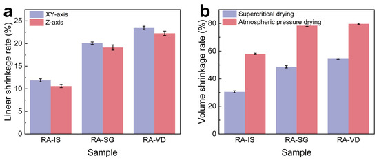 (a) Linear shrinkage along the XY and Z directions; (b) volume shrinkage.