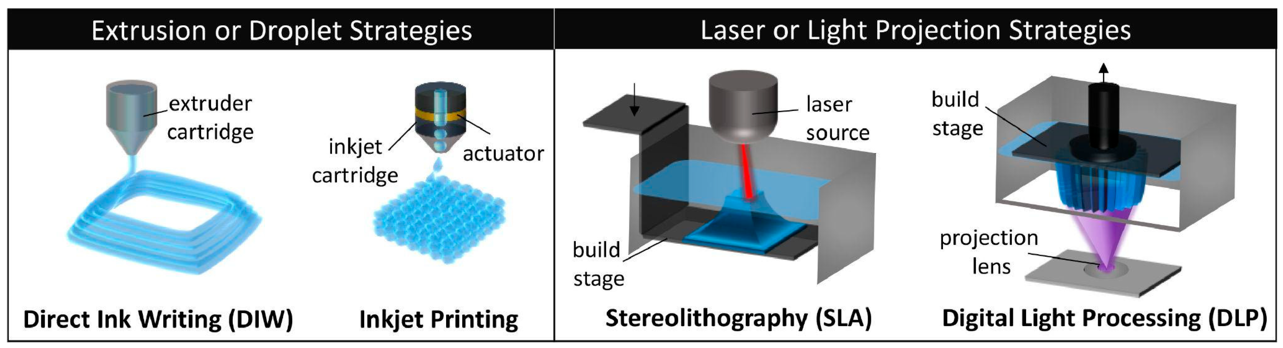 - Quan, H.; Zhang, T.; Xu, H.; Luo, S.; Nie, J.; Zhu, X. Photo-Curing 3D Printing Technique and Its Challenges. Bioact. Mater. 2020, 5, 110–115. [Google Scholar] [CrossRef]