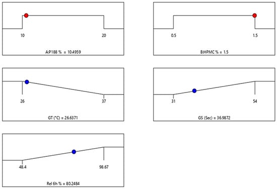 Release at 6 h (%) = 135.91722 − 3.57700 P188% − 12.08333 HPMC%