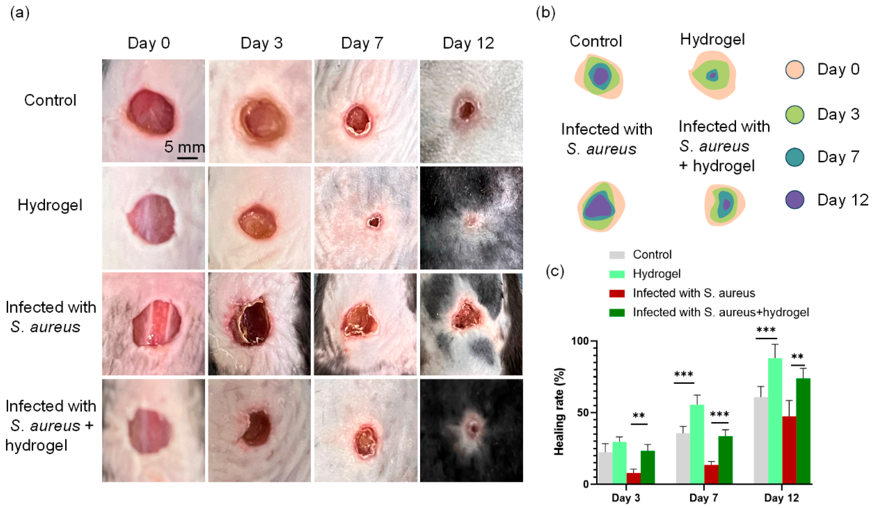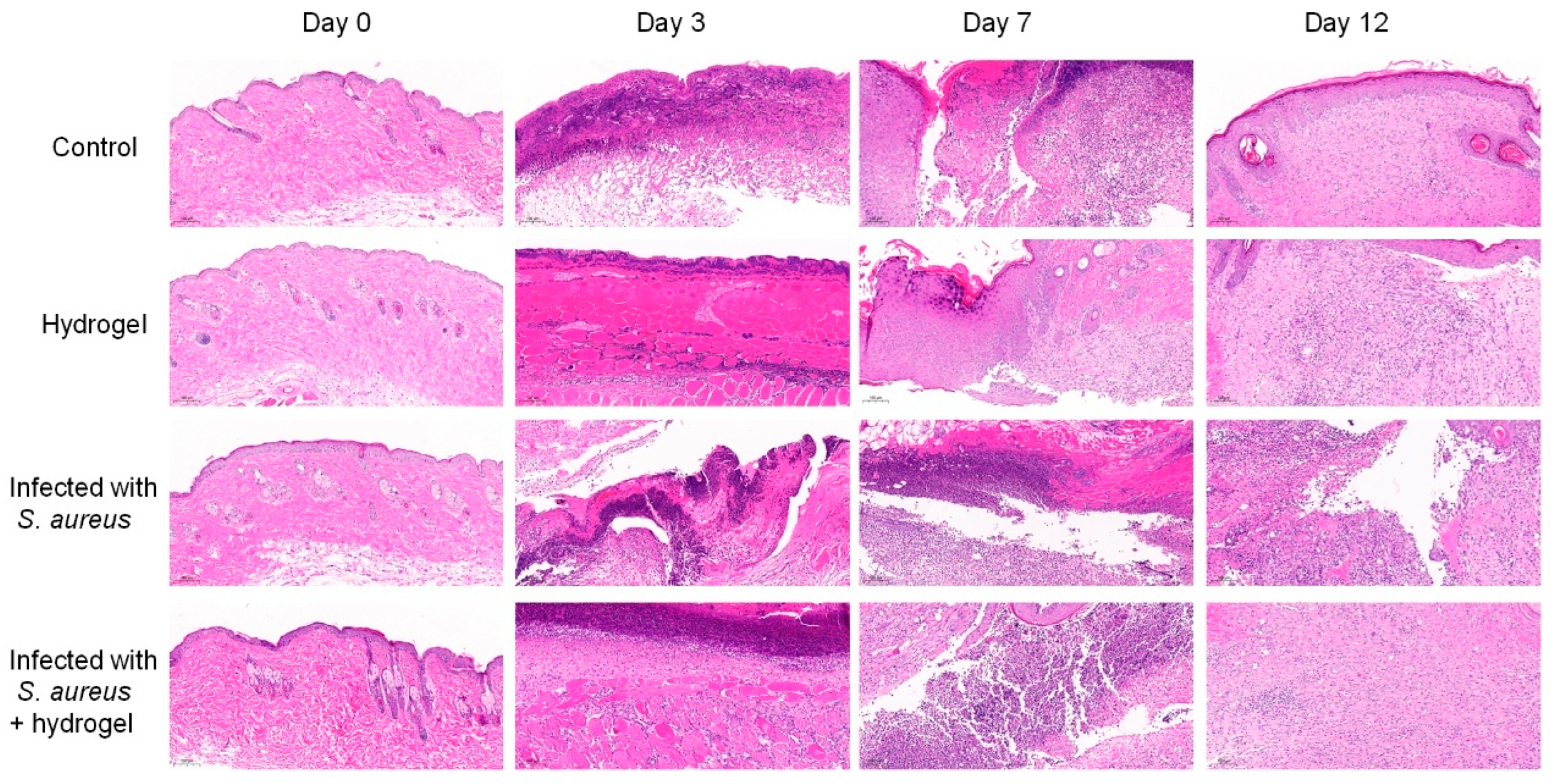 - Cao, W.; Zhou, X.; Tu, C.; Wang, Z.; Liu, X.; Kang, Y.; Wang, J.; Deng, L.; Zhou, T.; Gao, C. A broad-spectrum antibacterial and tough hydrogel dressing accelerates healing of infected wound in vivo. Biomater. Adv. 2022, 145, 213244. [Google Scholar] [PubMed]