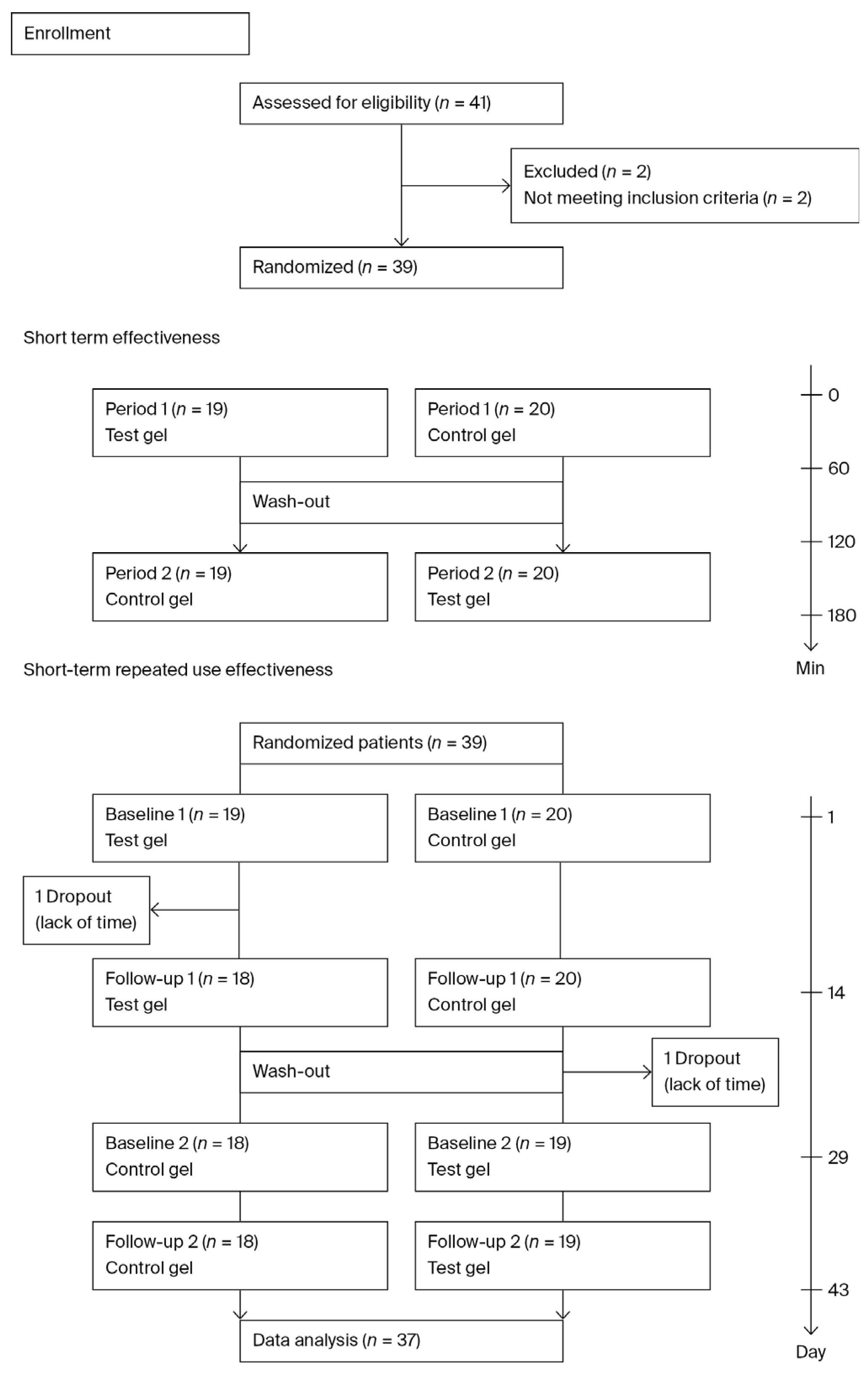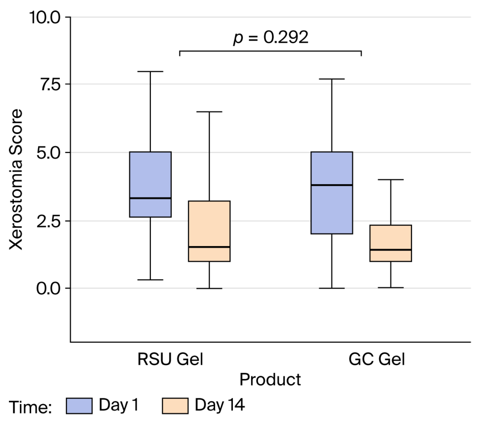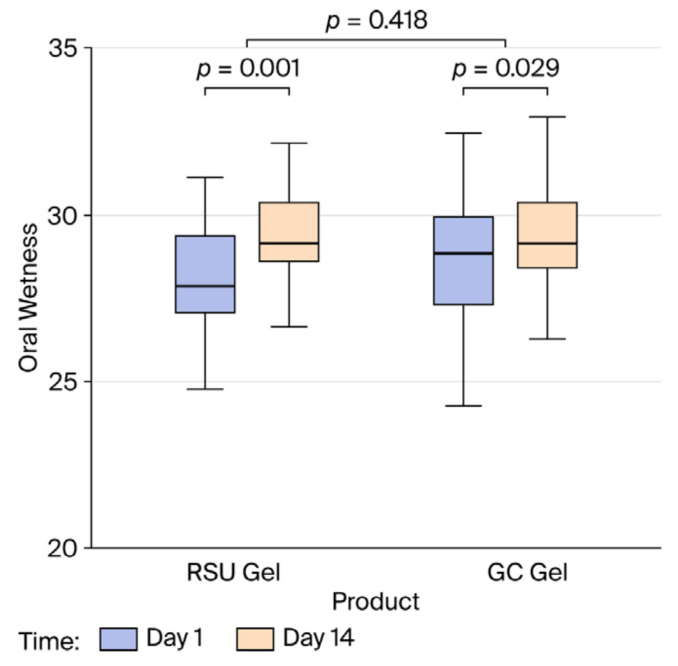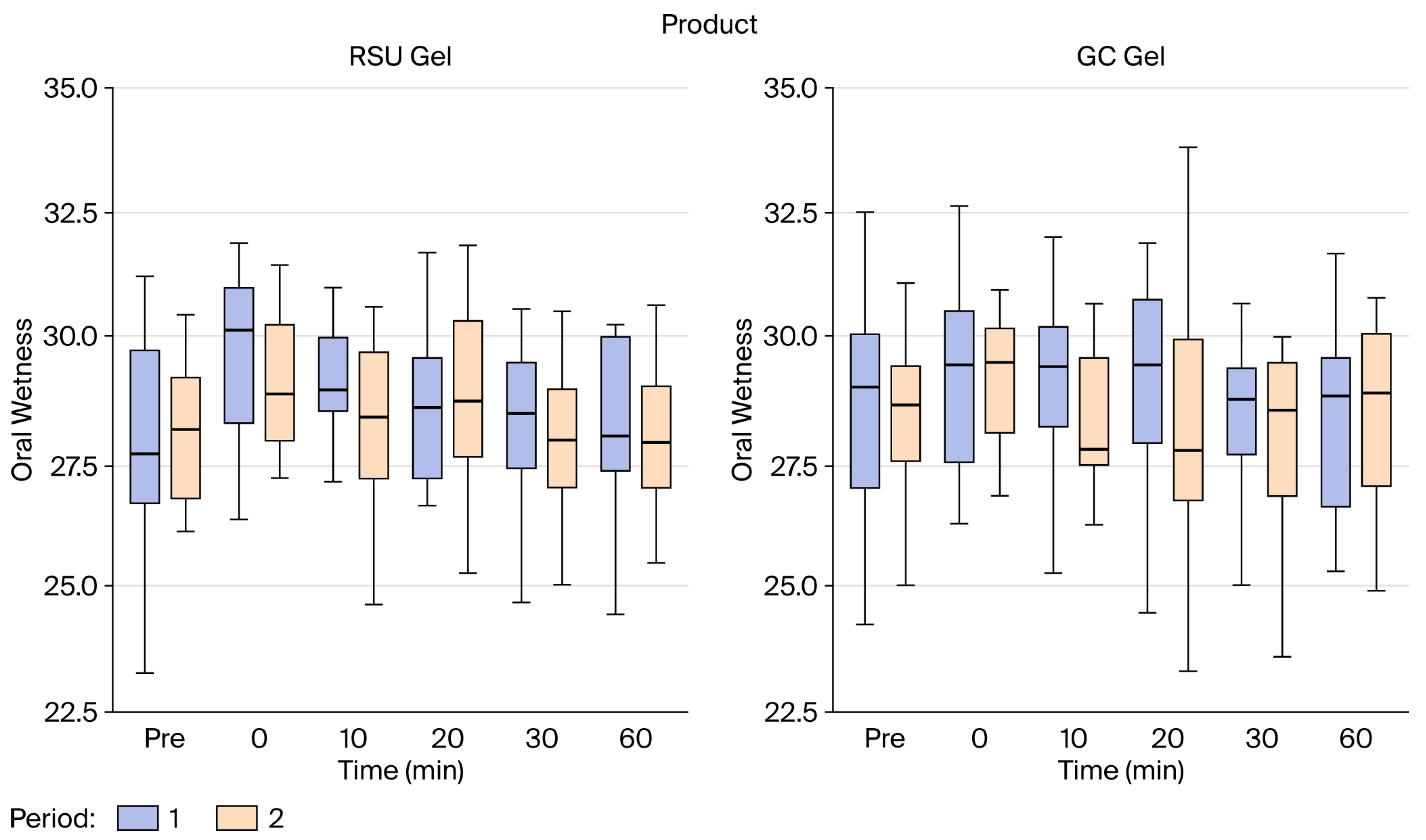 | Period 1: RSU Gel Period 2: GC Dry Mouth Gel ® (n = 19) | Period 1: GC Dry Mouth Gel® Period 2: RSU Gel (n = 20) | All (n = 39) | |