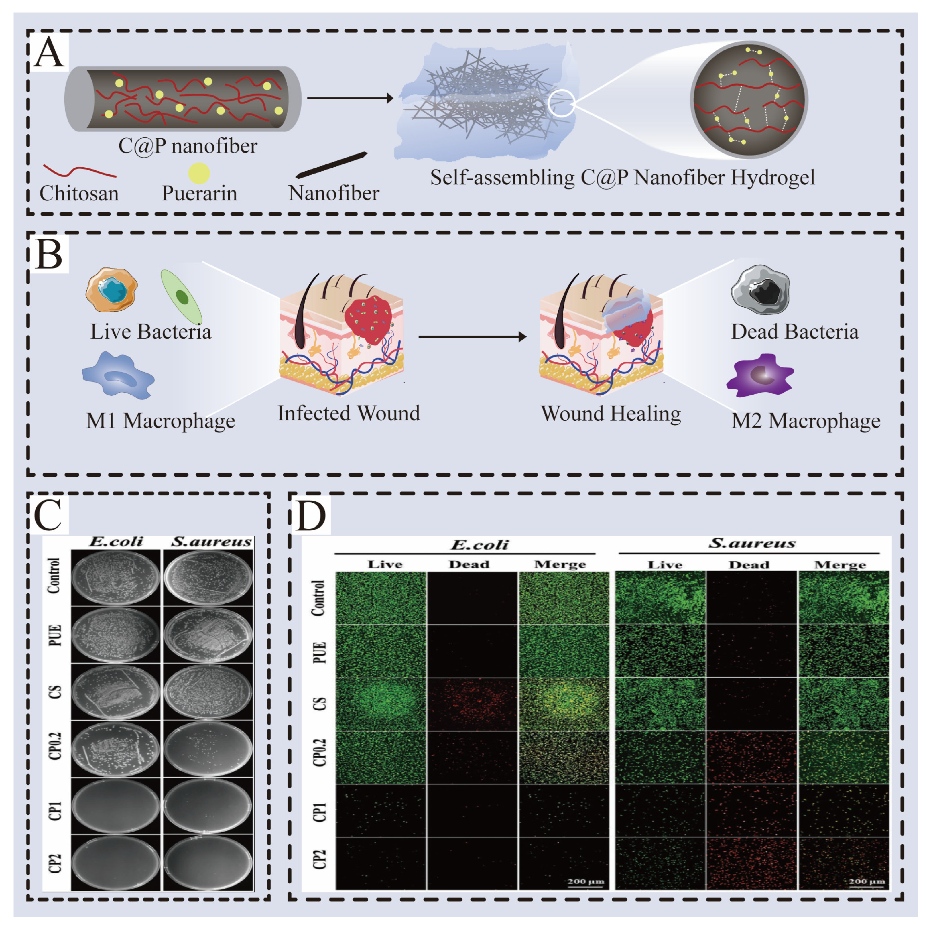- Yang, D.; Zhao, W.; Zhang, S.; Liu, Y.; Teng, J.; Ma, Y.; Huang, R.; Wei, H.; Chen, H.; Zhang, J.; et al. Dual Self-Assembly of Puerarin and Silk Fibroin into Supramolecular Nanofibrillar Hydrogel for Infected Wound Treatment. Adv. Healthc. Mater. 2024, 13, e2400071. [Google Scholar] [CrossRef]