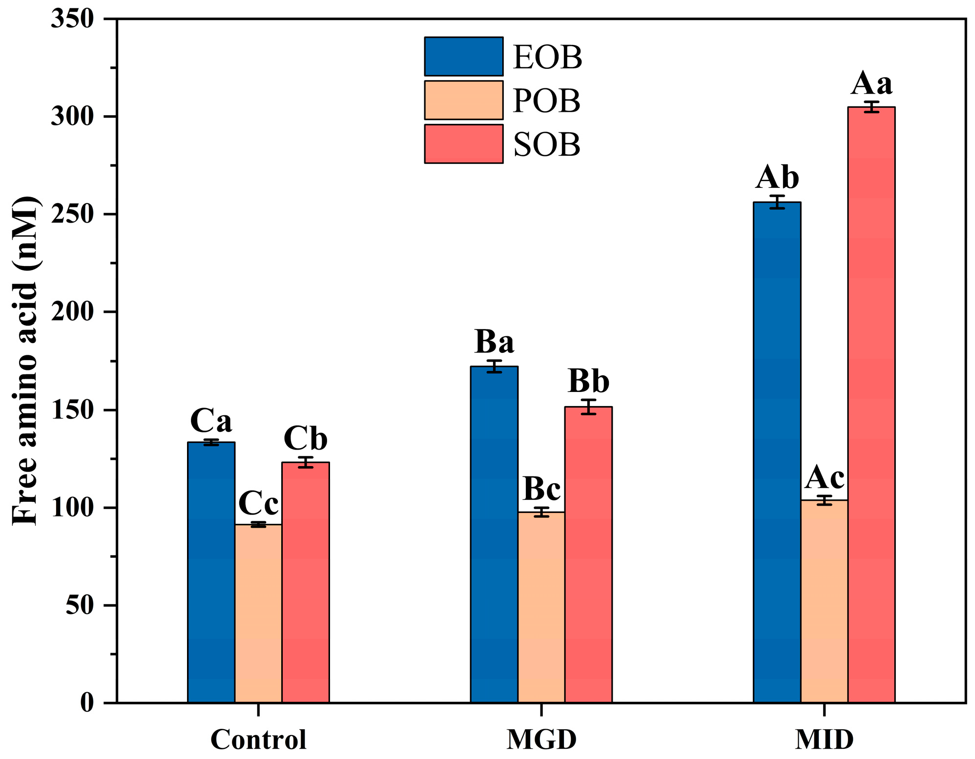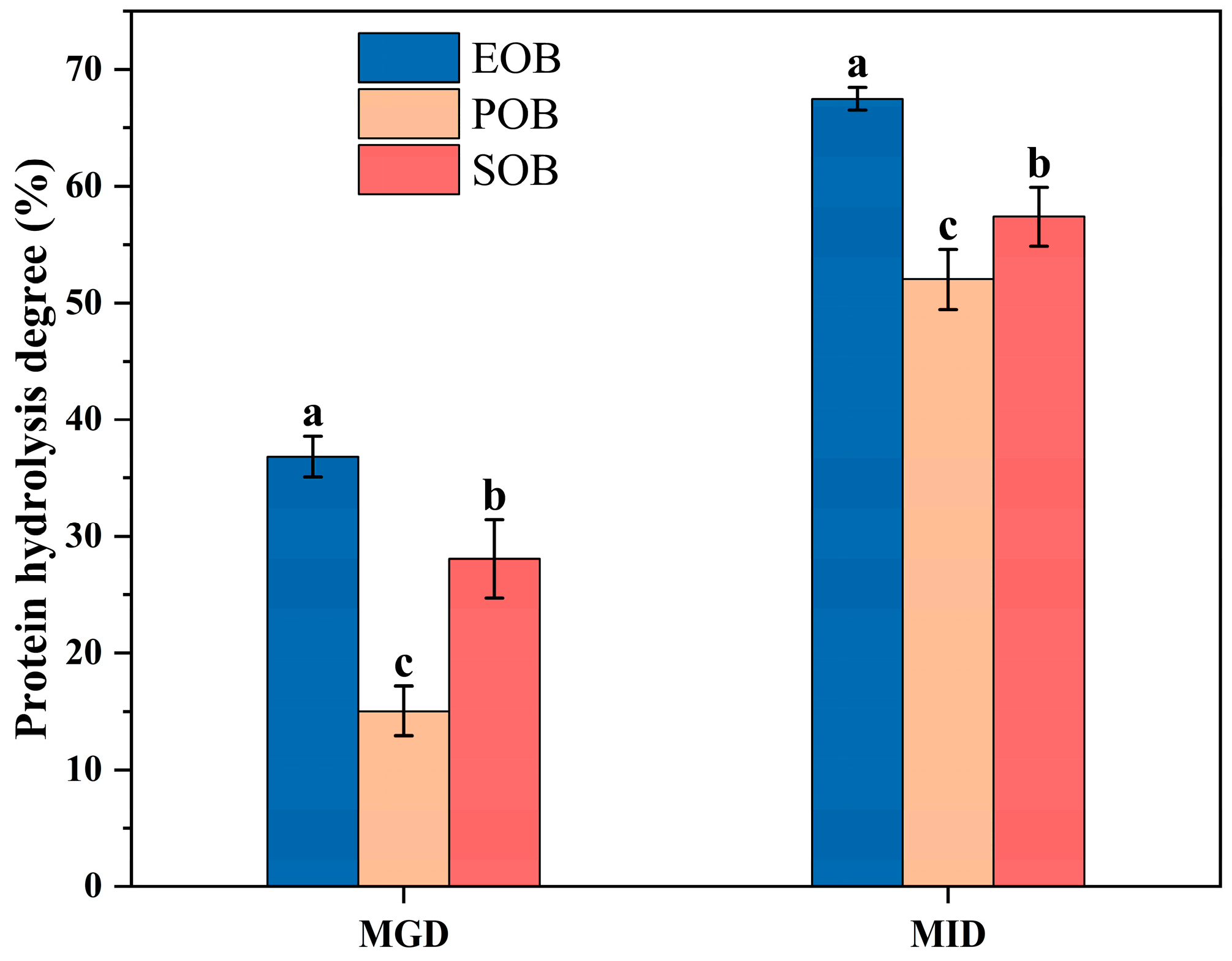 2.2. In Vitro Protein Hydrolysis Degree and Free Amino Acid Analysis