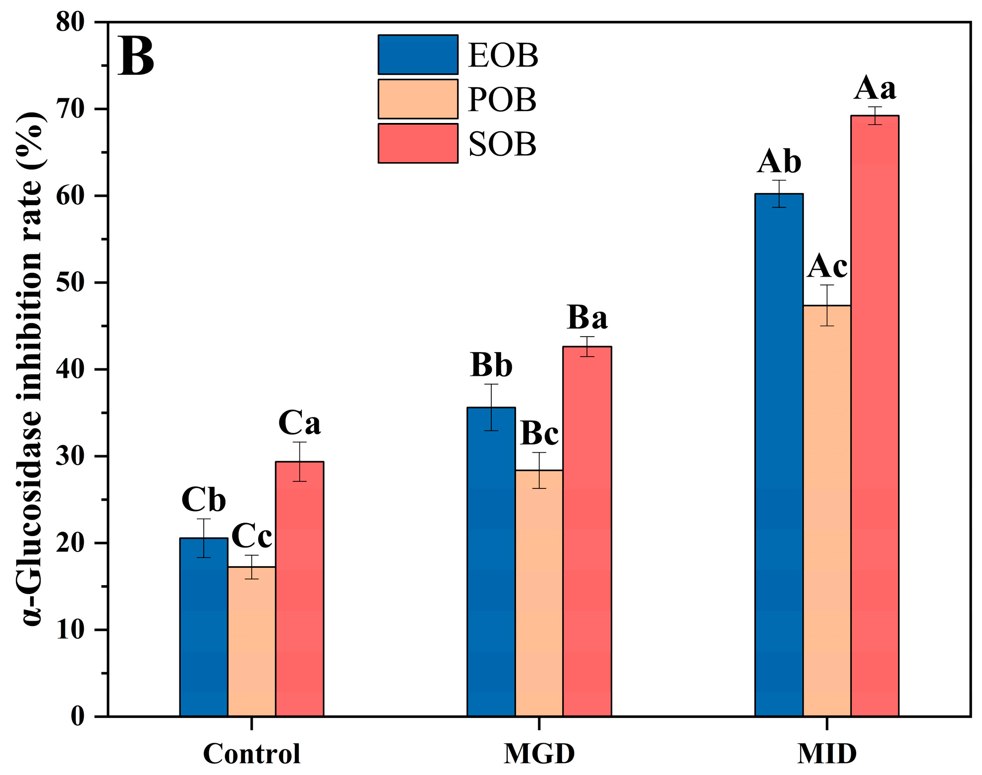 4.11. α-Glucosidase Inhibitory Ability Analysis