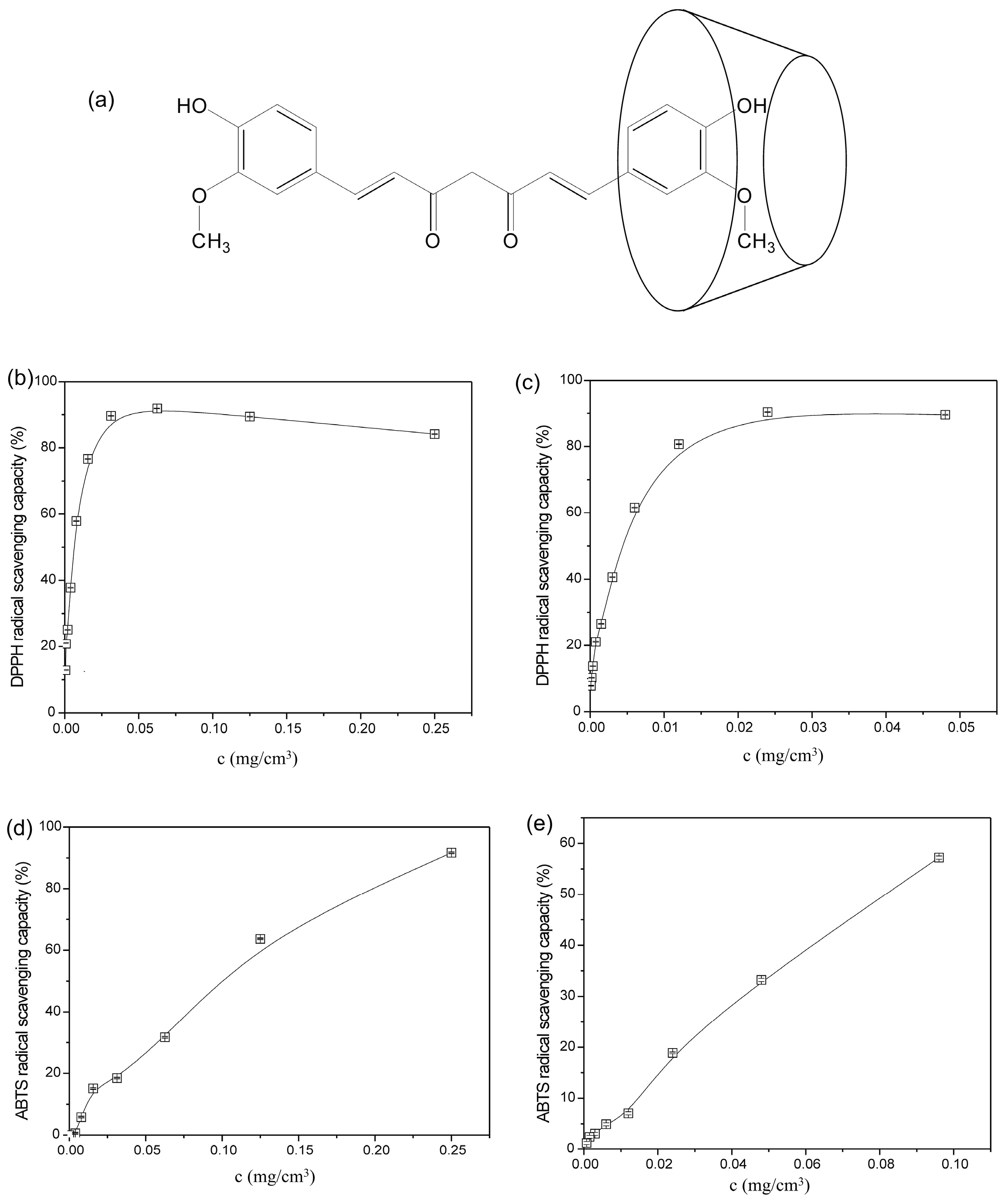4.5. Antioxidant Activity of Curcumin and Curcumin/2-Hydroxypropyl-β-Cyclodextrin Inclusion Complex
