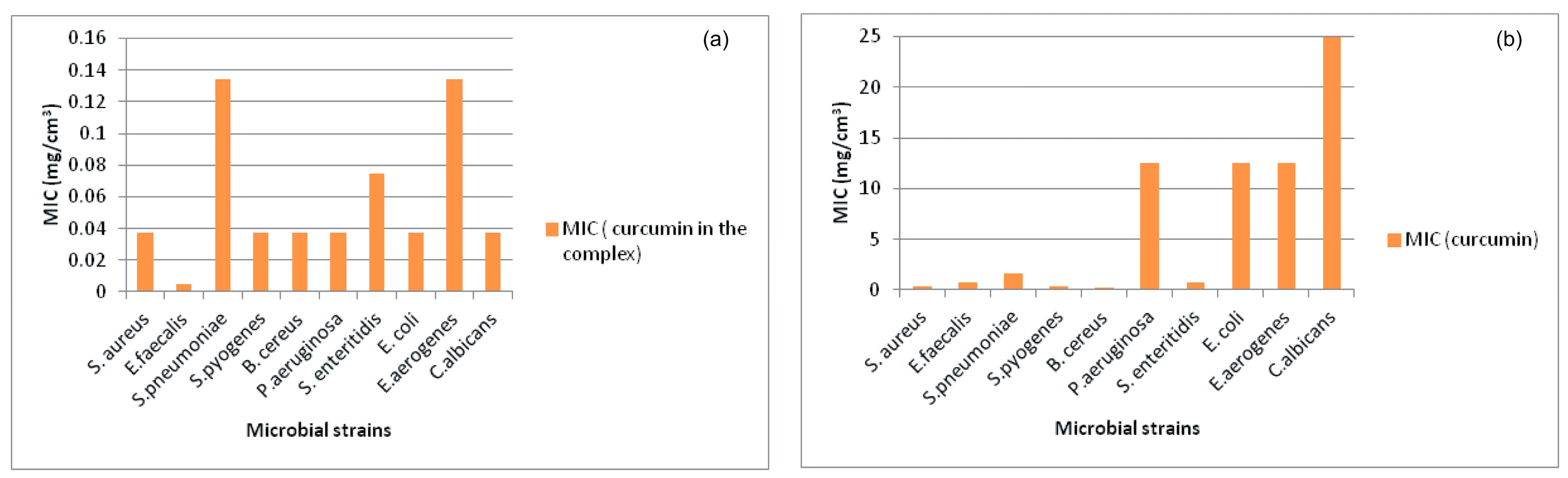 4.6. Antimicrobial Activity of Curcumin and Curcumin/2-Hydroxypropyl-β-Cyclodextrin Inclusion Complex