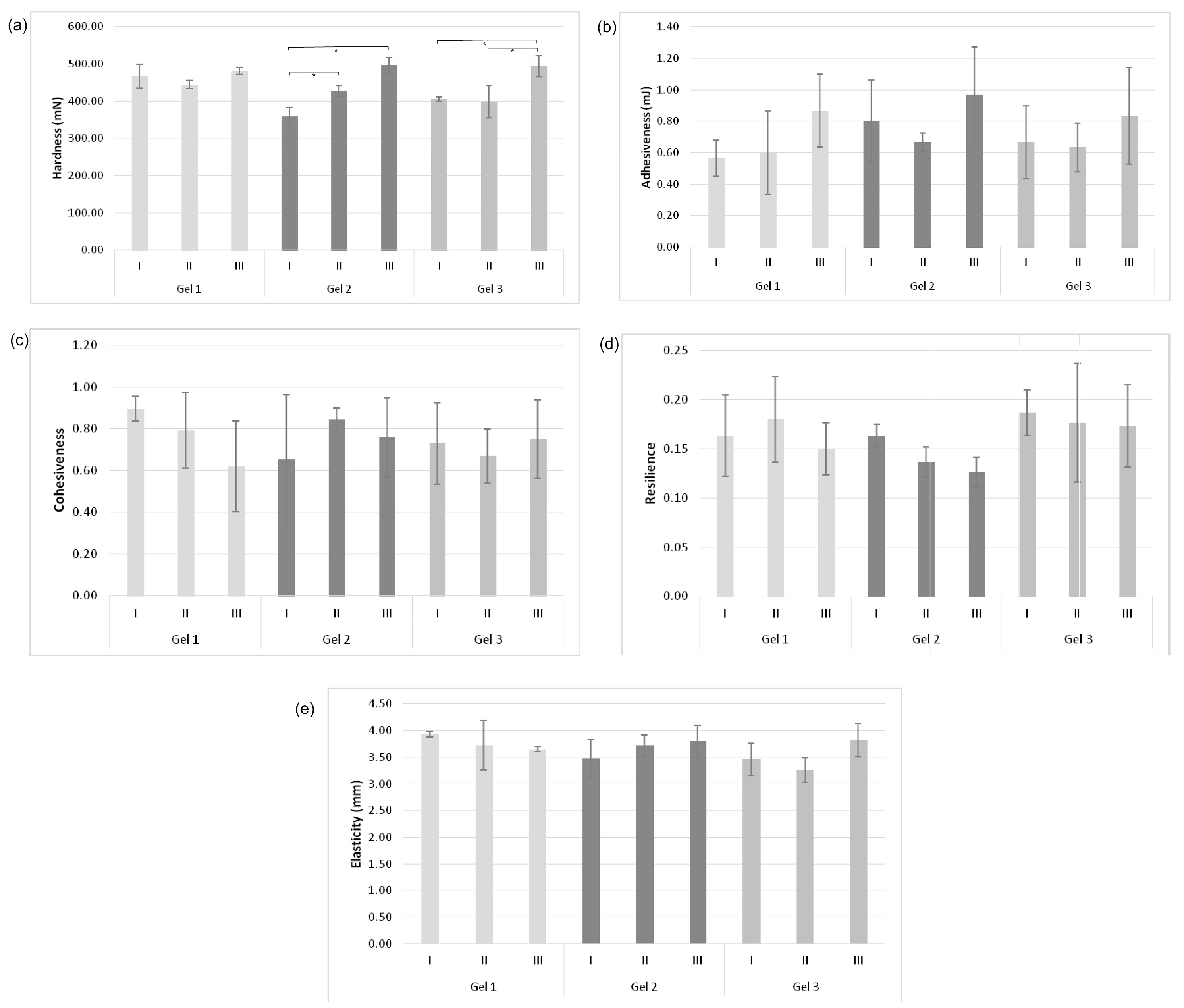 - Hurler, J.; Engesland, A.; Poorahmary Kermany, B.; Škalko-Basnet, N. Improved texture analysis for hydrogel characterization: Gel cohesiveness, adhesiveness, and hardness. J. Appl. Polym. Sci. 2012, 125, 180–188. [Google Scholar] [CrossRef]