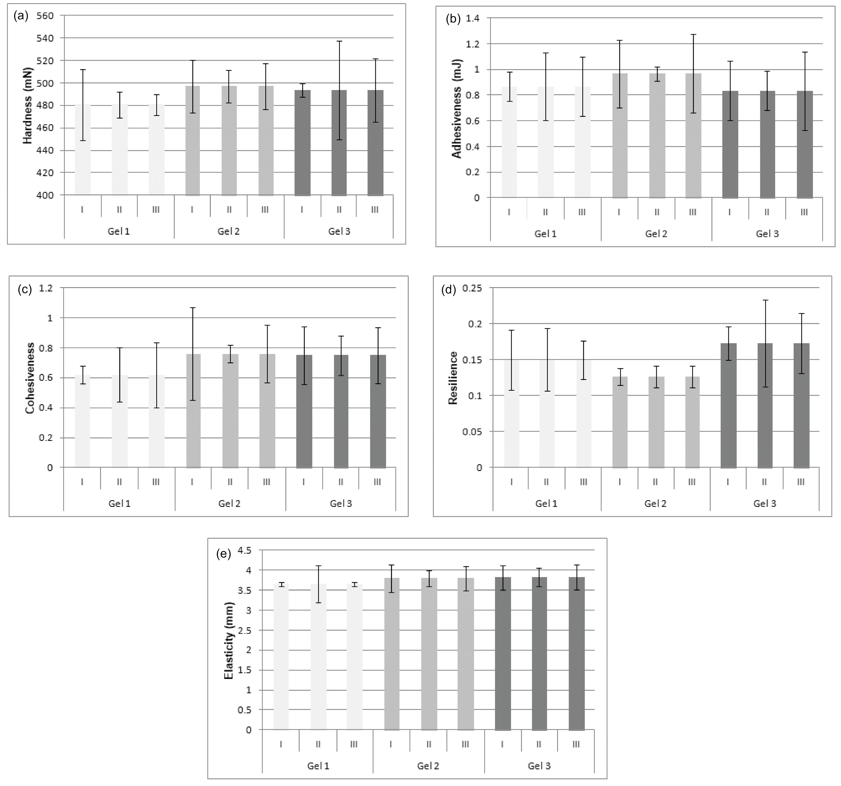 | Gel 1 (g) | Gel 2 (g) | Gel 3 (g) | |