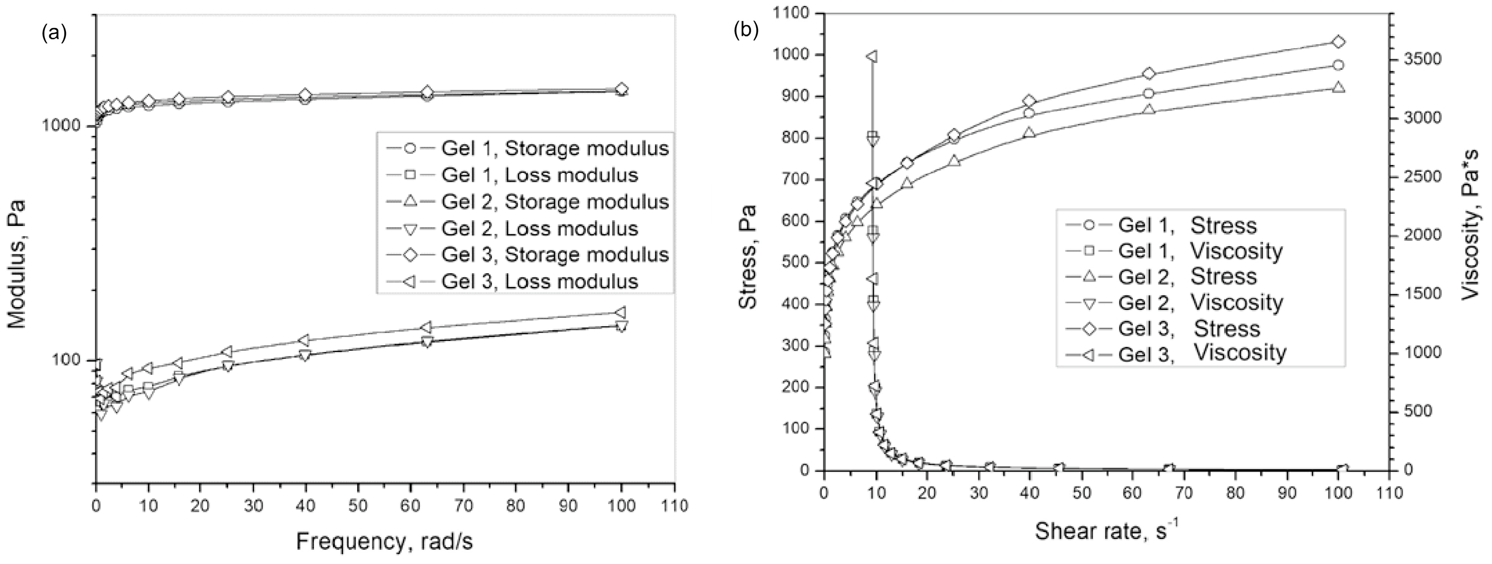- Kumara, M. Viscoelastic properties and rheological characterization of carbomers. Int. J. Eng. Res. Technol. 2015, 1, 17–30. [Google Scholar]