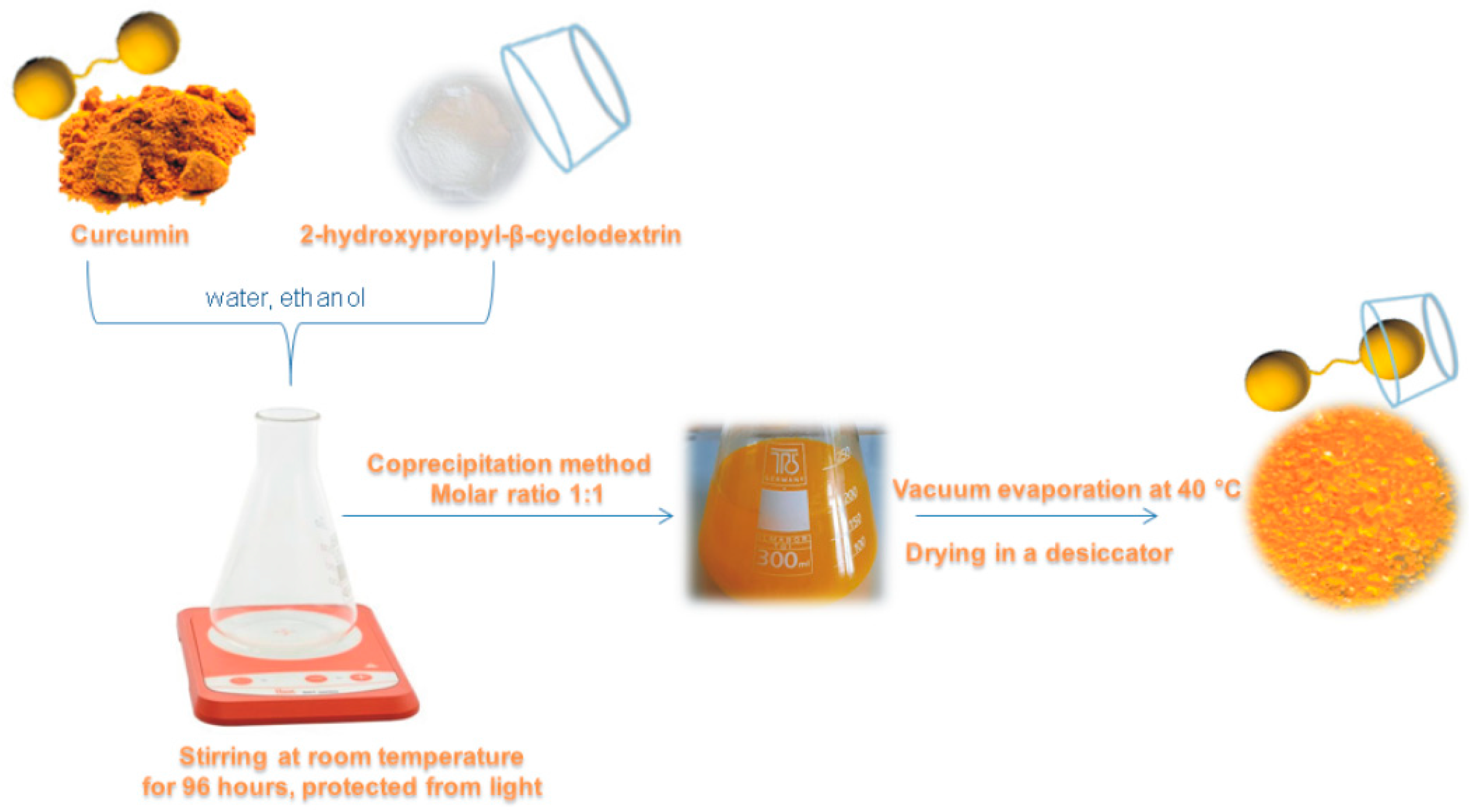 4.2. Preparation of Curcumin/2-Hydroxypropyl-β-Cyclodextrin Inclusion Complex