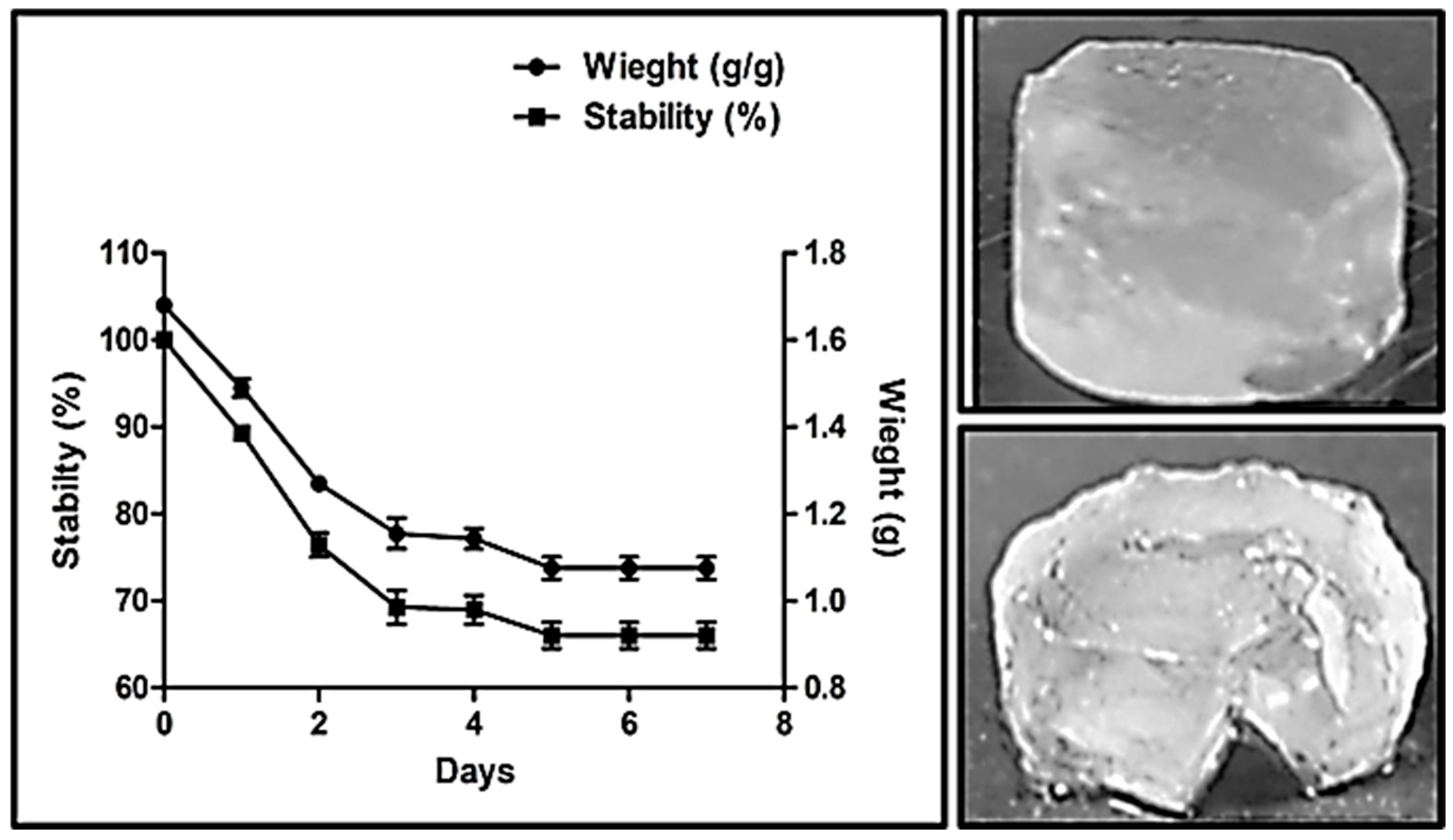 4.7. Estimation of Stability of Hydrogel