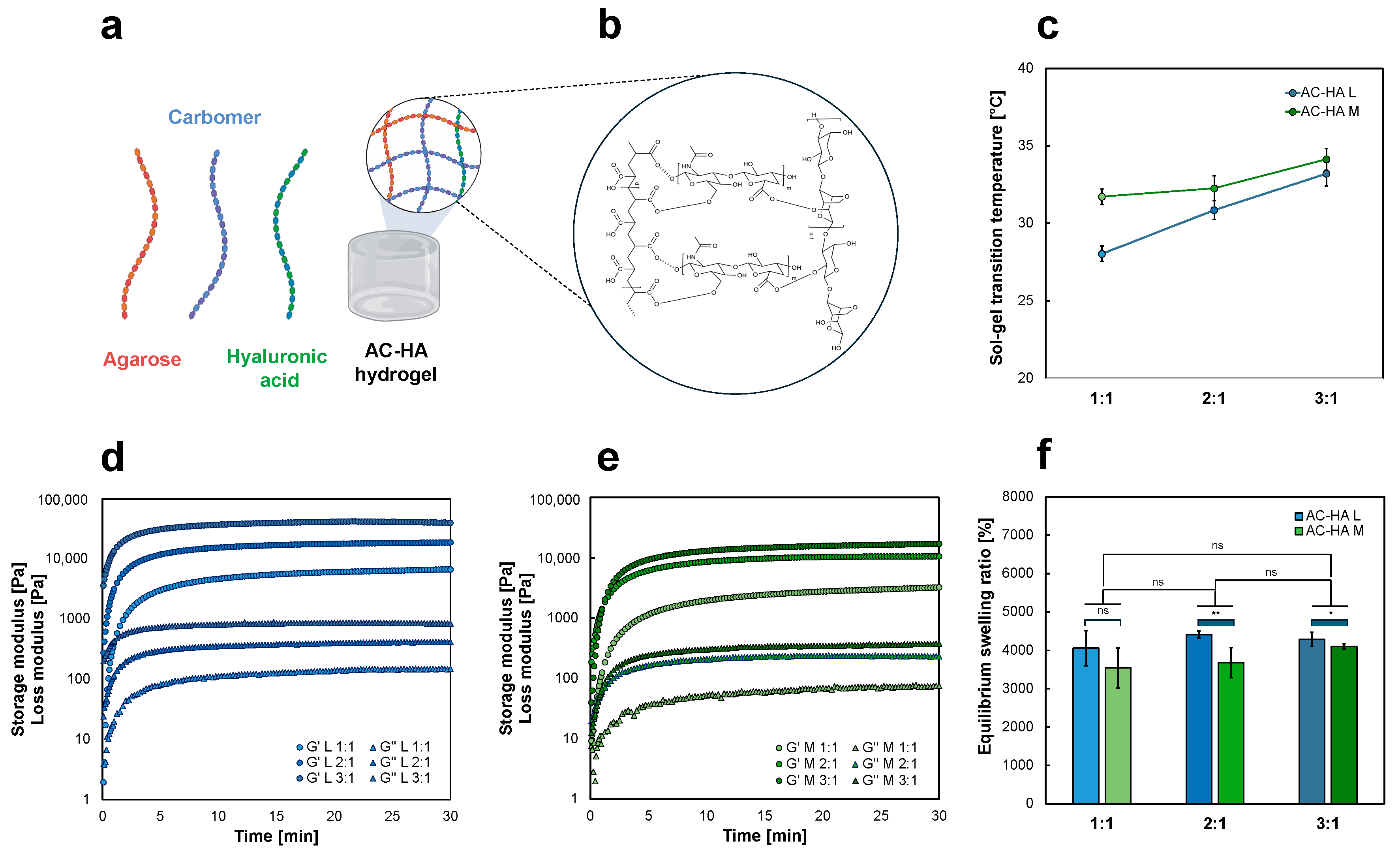 2.2. AC-HA Hydrogel Formulation and Characterization
