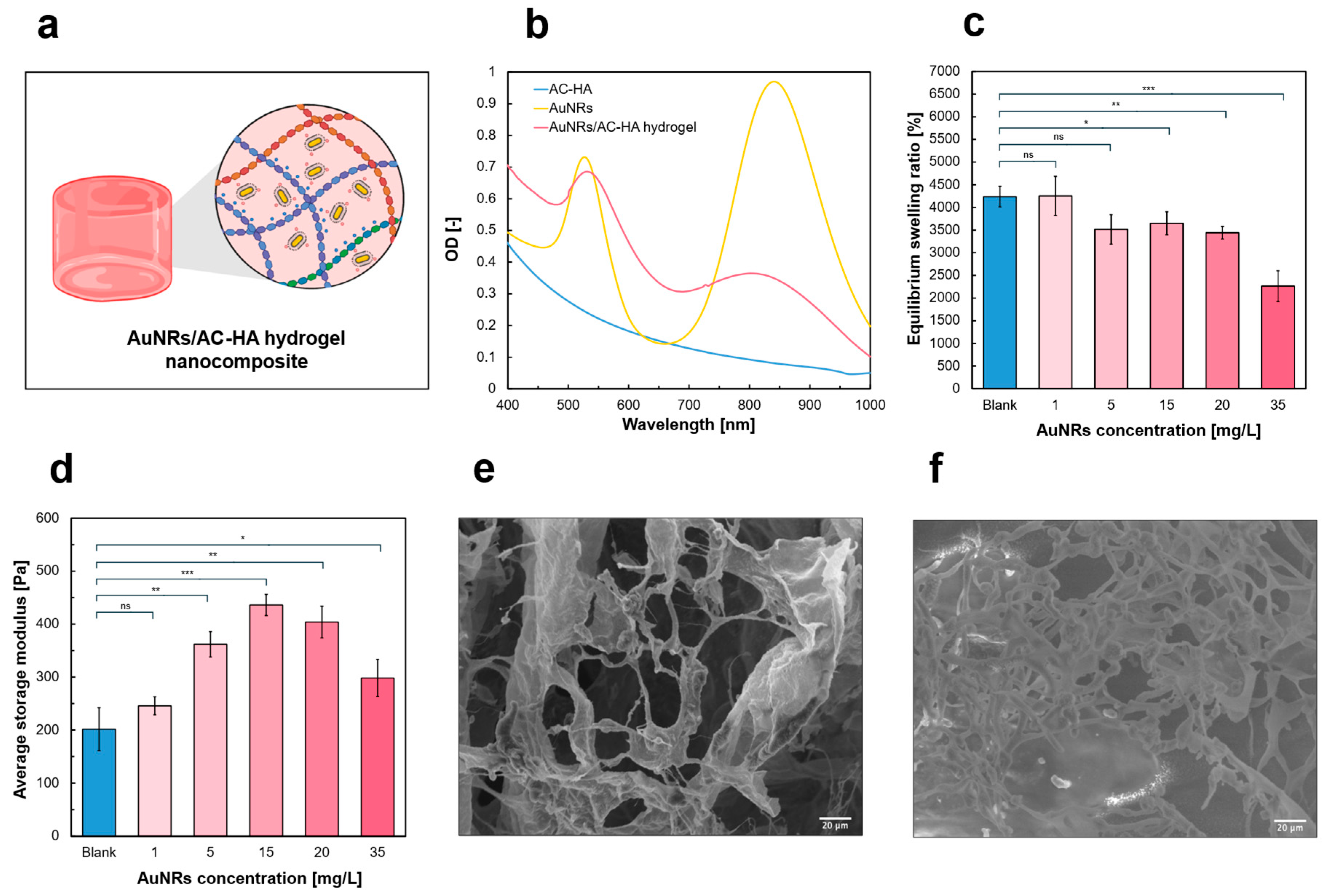 4.3. AC-HA and AuNR/AC-HA Hydrogel Synthesis and Characterization