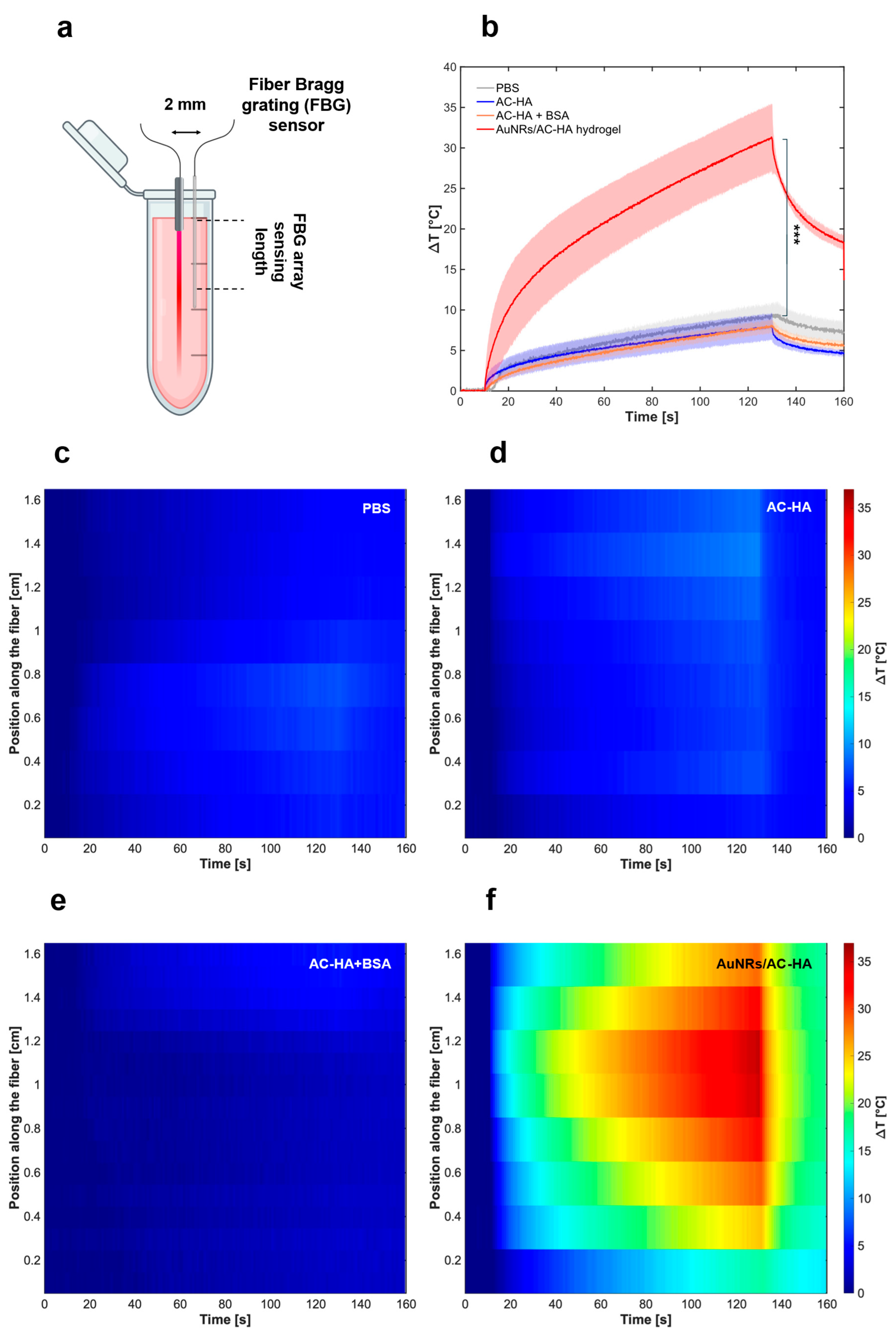 - Bianchi, L.; Mooney, R.; Cornejo, Y.; Hyde, C.; Schena, E.; Berlin, J.M.; Aboody, K.; Saccomandi, P. Fiber Bragg Grating Sensors-Based Thermometry of Gold Nanorod-Enhanced Photothermal Therapy in Tumor Model. IEEE Sens. J. 2022, 22, 11297–11306. [Google Scholar] [CrossRef]