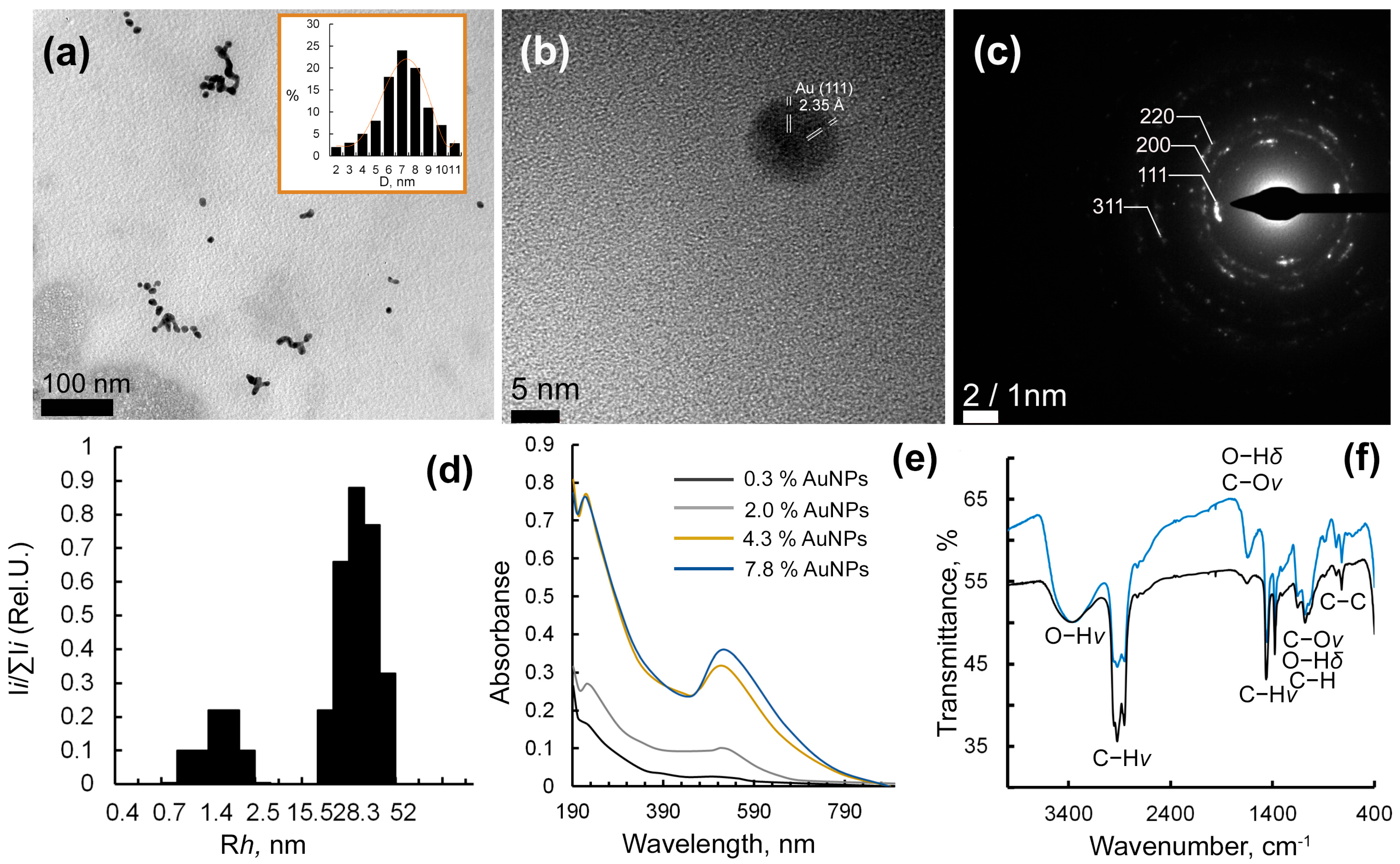 2.2. Structural Analysis of Au-Ar-Gal Nanocomposites