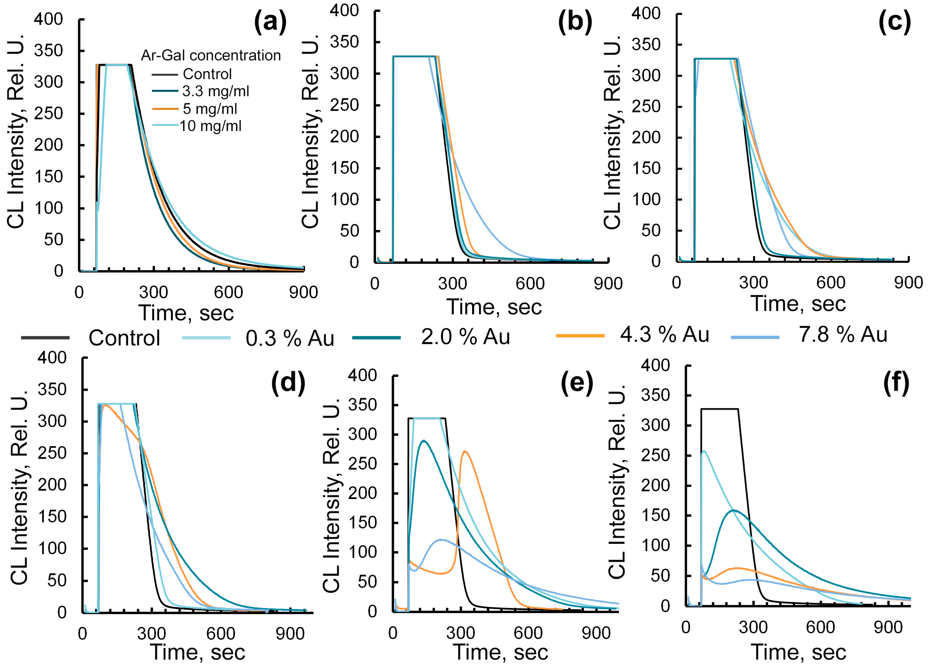 2.3. Assessment of Radical-Binding Capacity of Ar-GalAuNPs Composites by Chemiluminescent Method