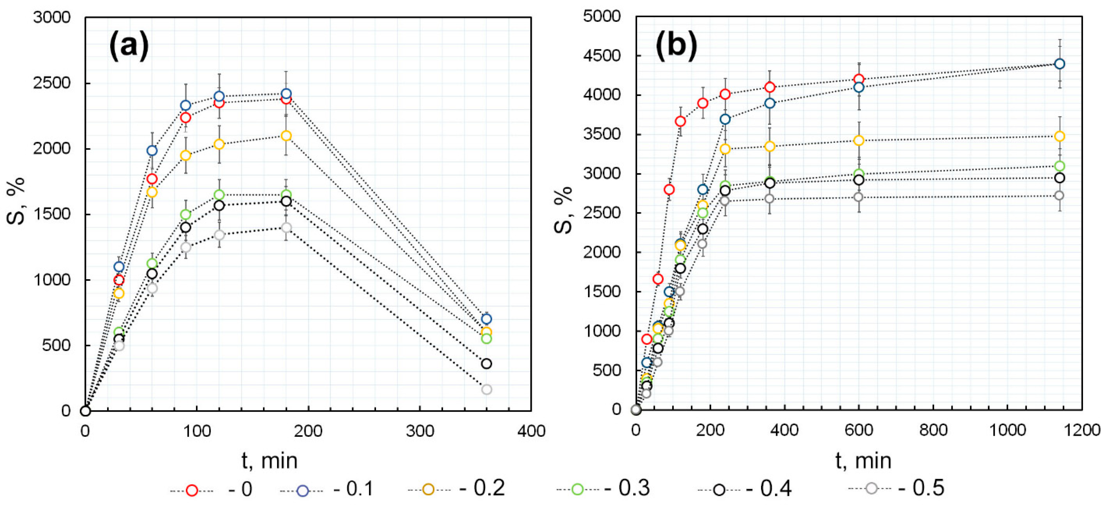 4.8. Investigation of Gel Swelling