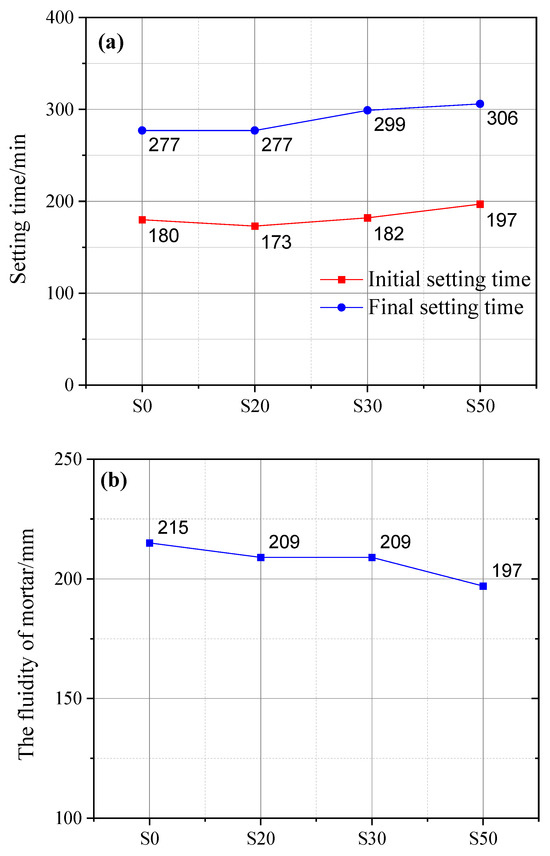 - Increasing GBFS content prolonged the setting time and reduced mortar fluidity, although the effect was negligible at GBFS content of 20%.