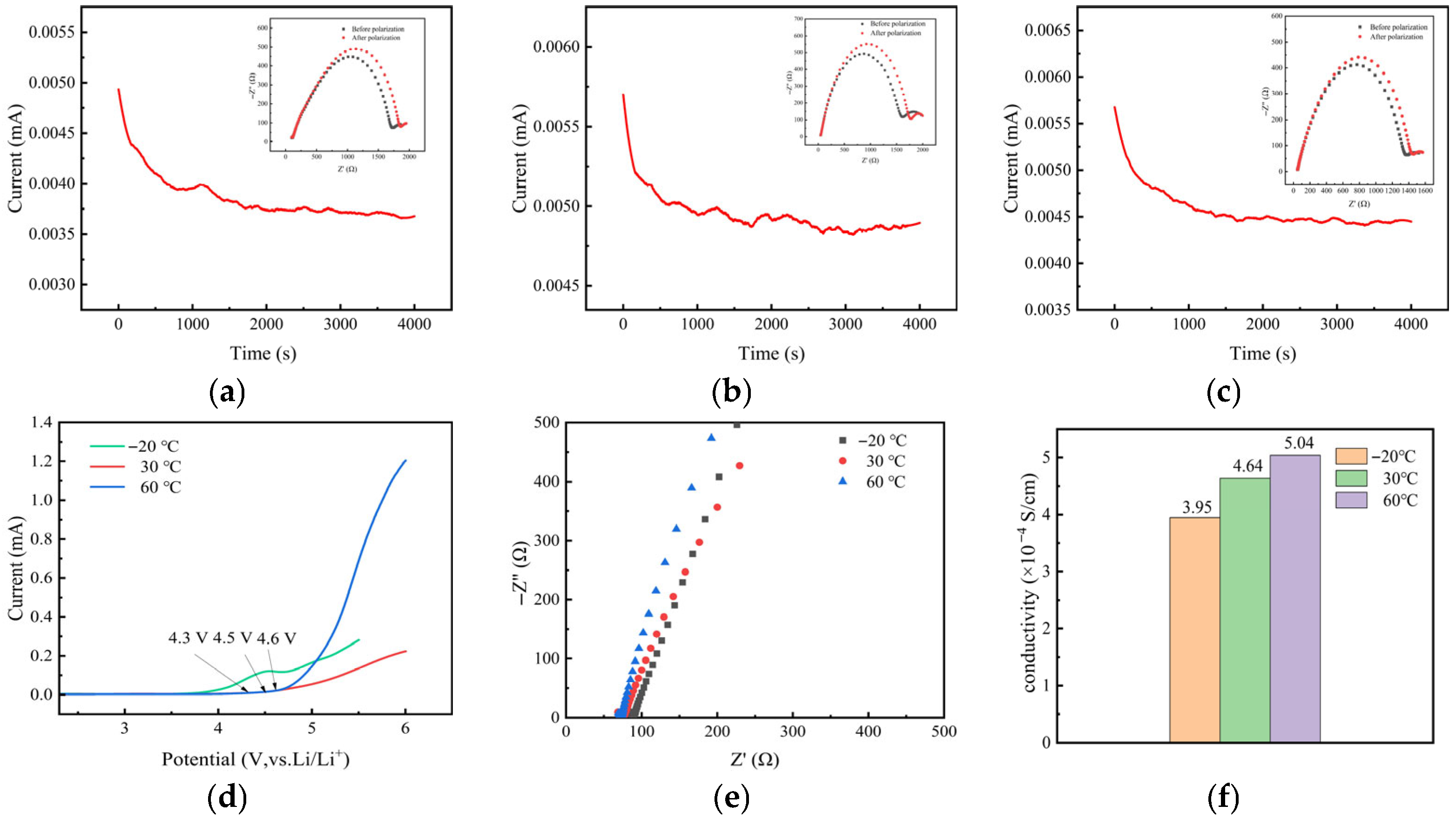 | Temperature (°C) | Impedance/Ω | Ionic Conductivity (×10−4 S·cm−1) |