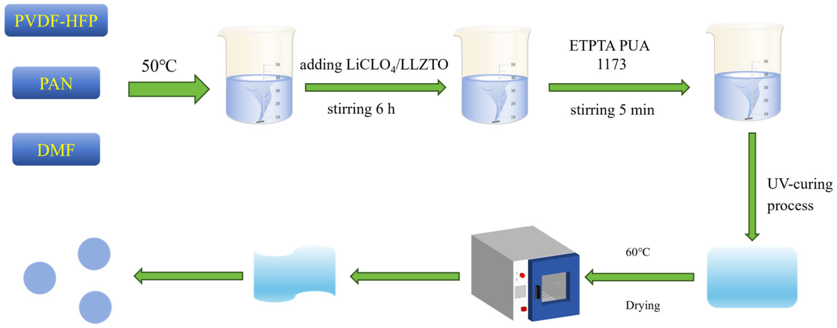 - Yang, H.; Jing, M.; Wang, L.; Xu, H.; Yan, X.; He, X. PDOL-based solid electrolyte toward practical application: Opportunities and challenges. Nano-Micro Lett. 2024, 16, 127. [Google Scholar] [CrossRef]