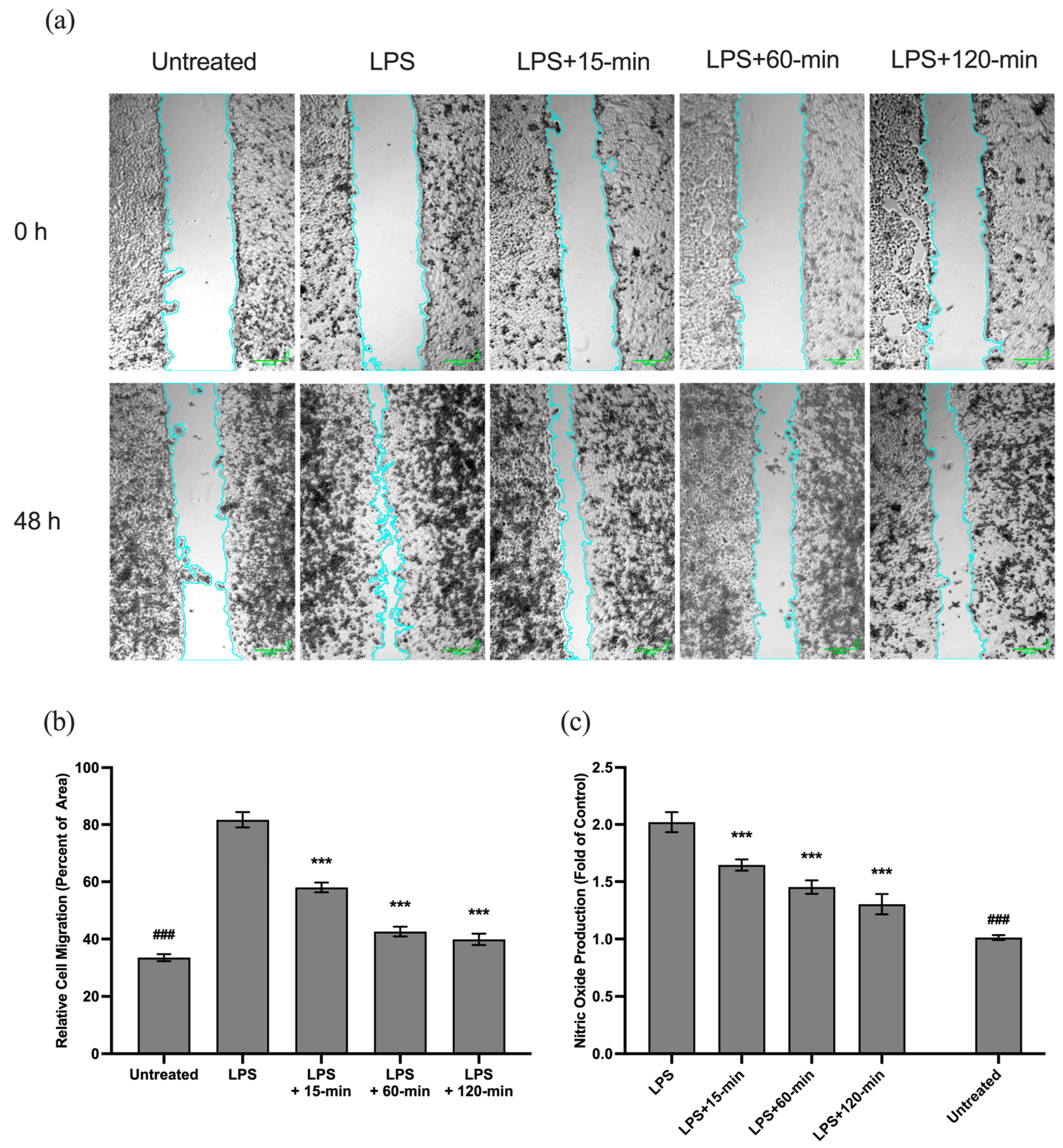 2.5. Inhibition of Nitric Oxide Production and Macrophage Migration in LPS-Stimulated Raw 264 Cells by Gel Pad with Curcumin Oil