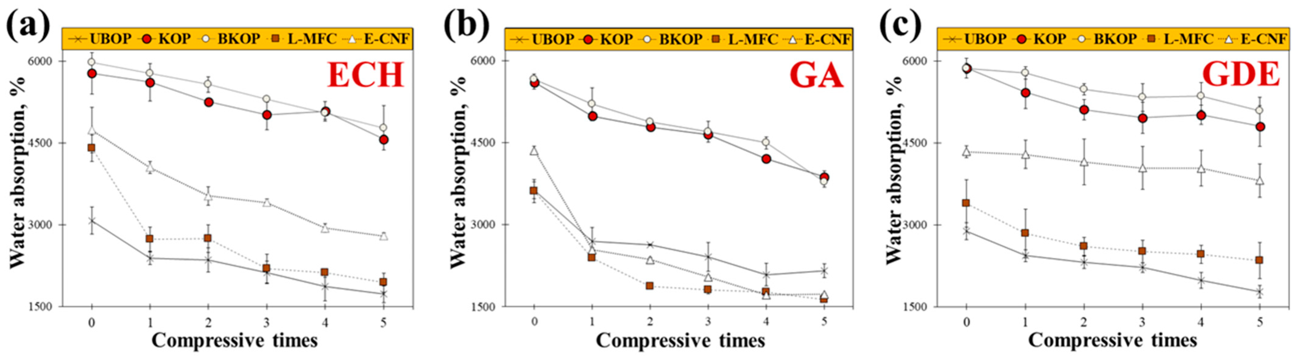 - Solhi, L.; Guccini, V.; Heise, K.; Solala, I.; Niinivaara, E.; Xu, W.; Kontturi, E. Nanocellulose–water interactions: Turning a detriment into an asset. Chem. Rev. 2023, 123, 1925–2015. [Google Scholar] [CrossRef] [PubMed]