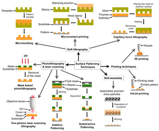 - Kim, H.N.; Kang, D.-H.; Kim, M.S.; Jiao, A.; Kim, D.-H.; Suh, K.-Y. Patterning methods for polymers in cell and tissue engineering. Ann. Biomed. Eng. 2012, 40, 1339–1355. [Google Scholar] [CrossRef]