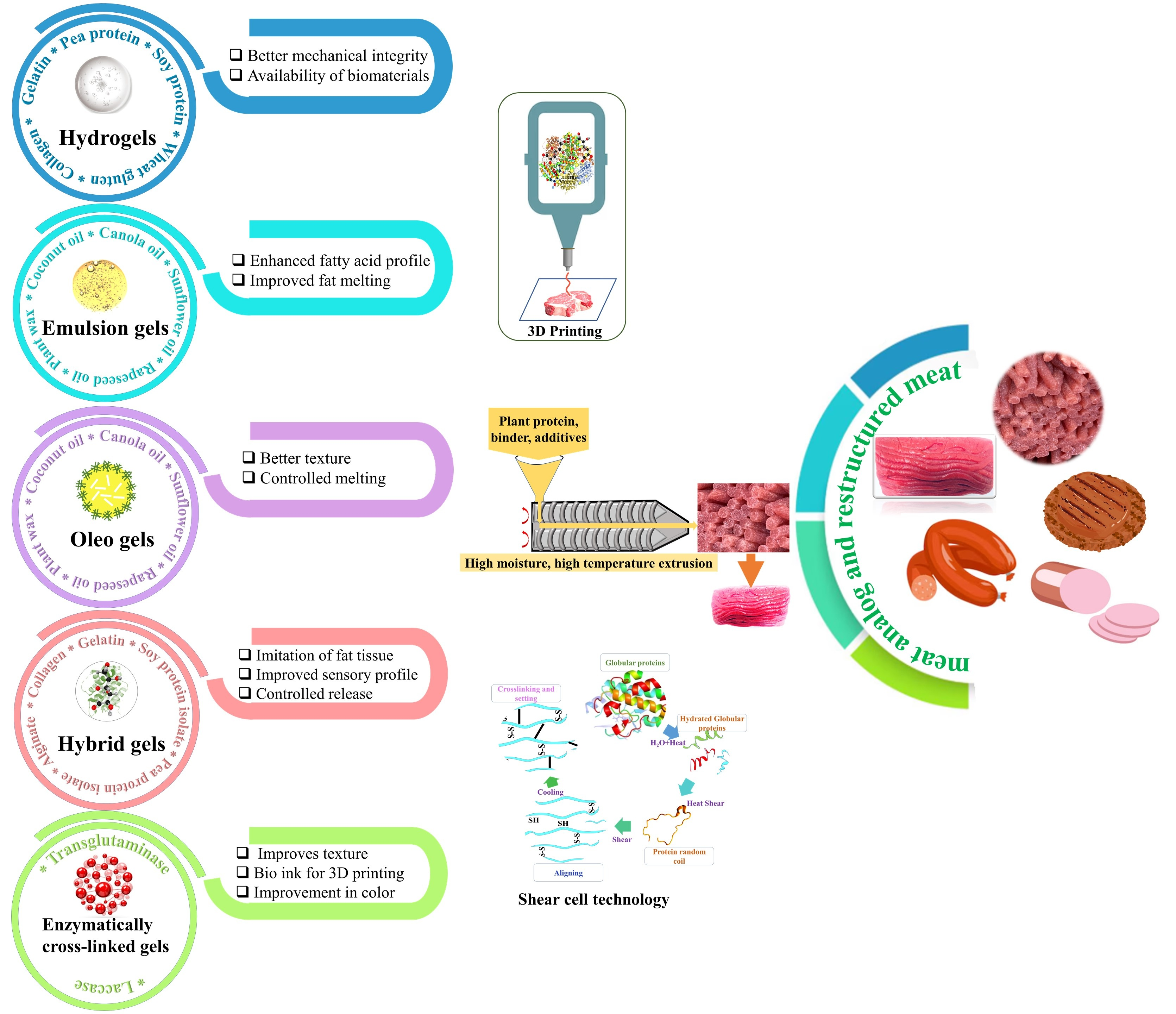 A Comprehensive Review on Innovative Food Gelling Strategies for Sustainable Production of Meat Analogs and Restructured Meat