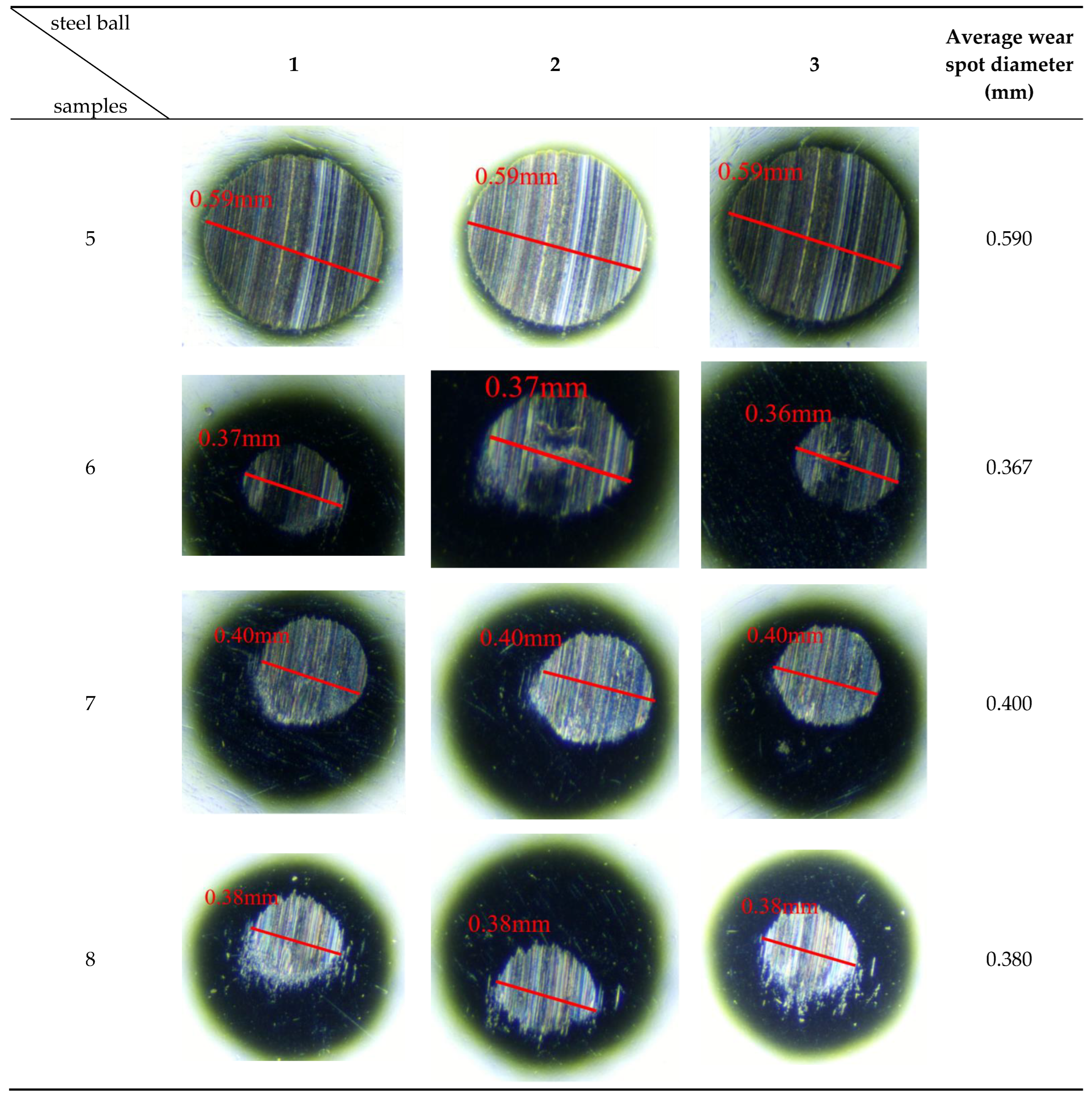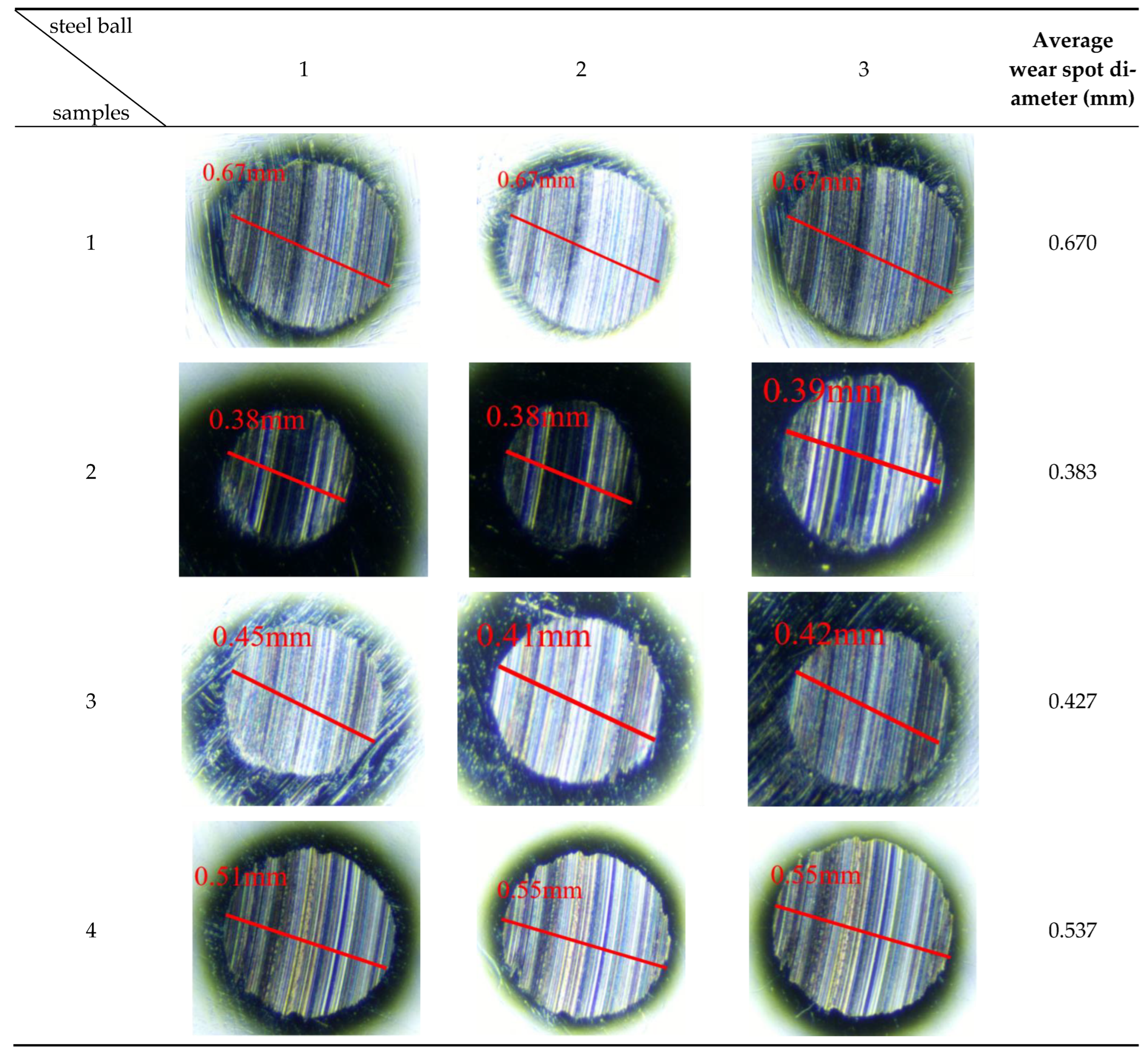 2.1.2. Analysis of Steel Ball Scratch Diameter for Different Samples