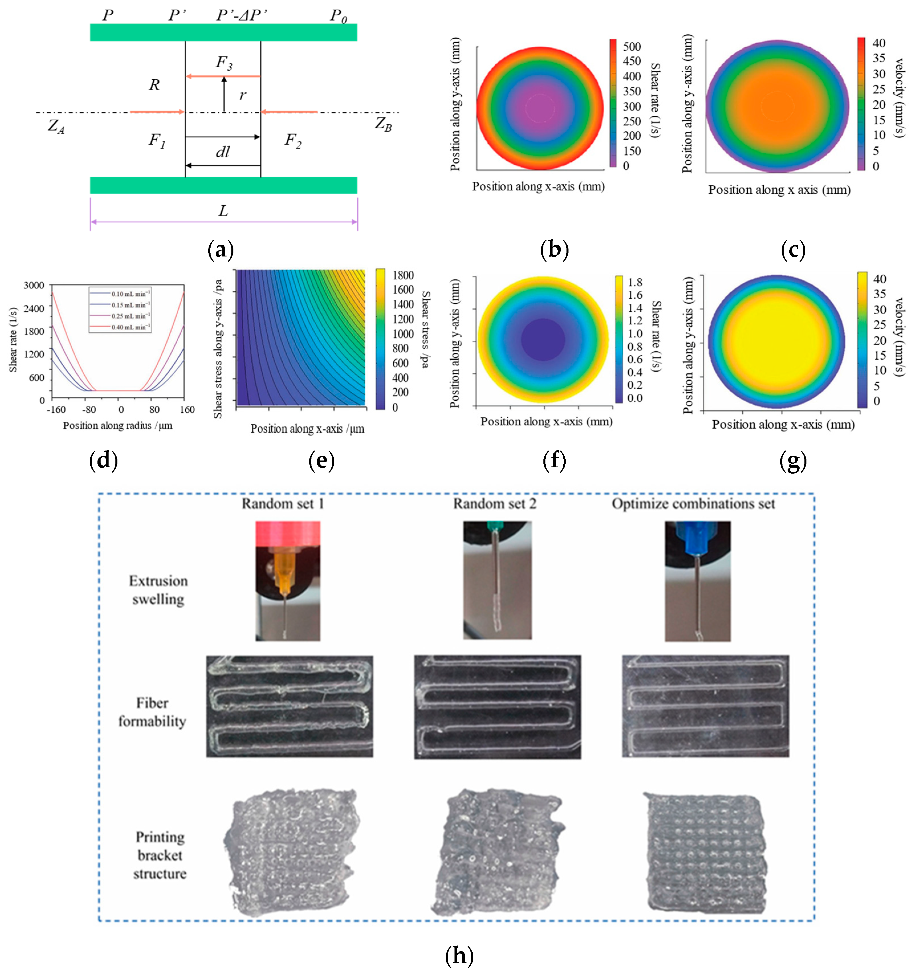 4.2. Theoretical Analysis of Shear Stress and Shear Rate Distribution Within Nozzles