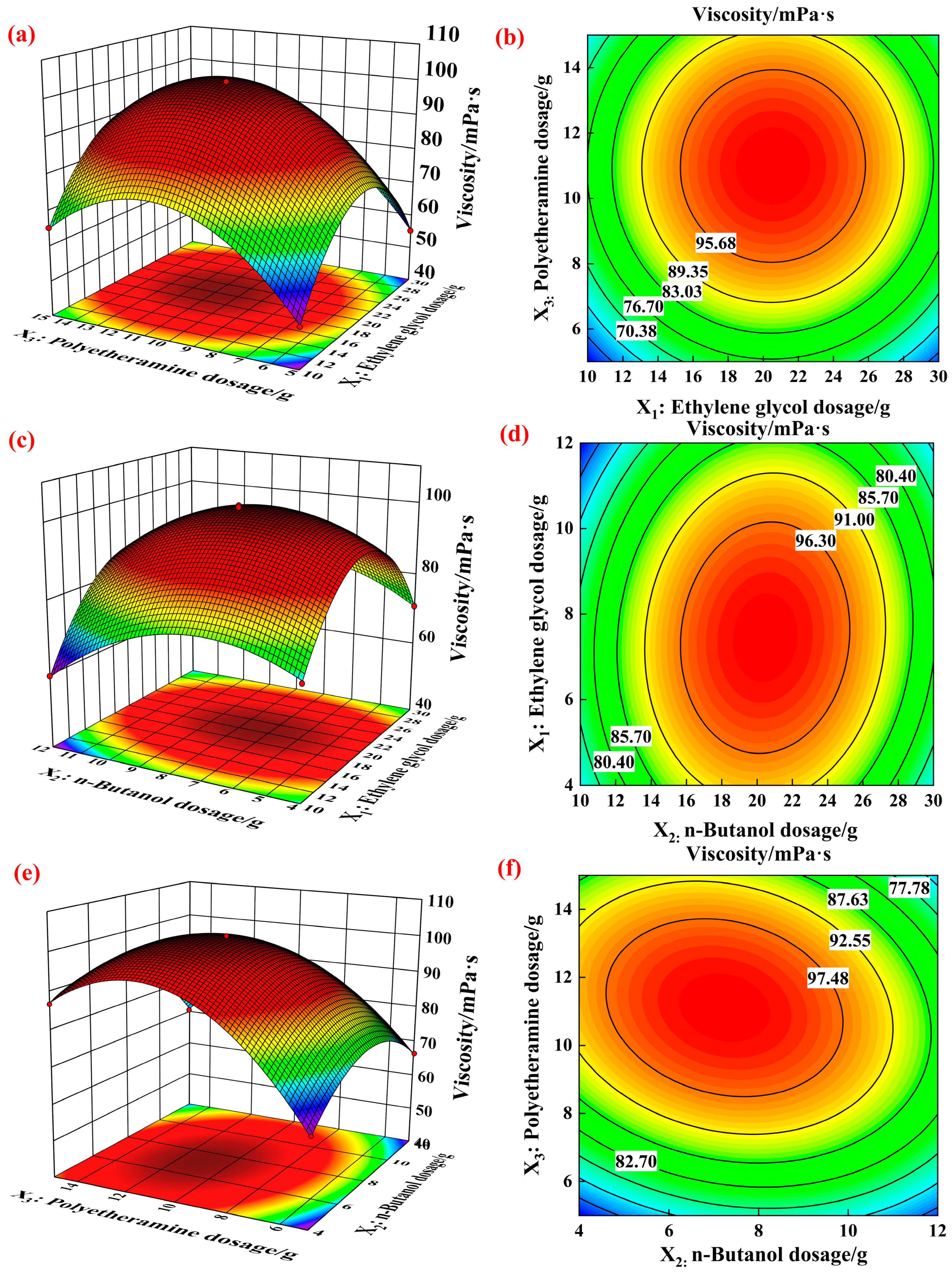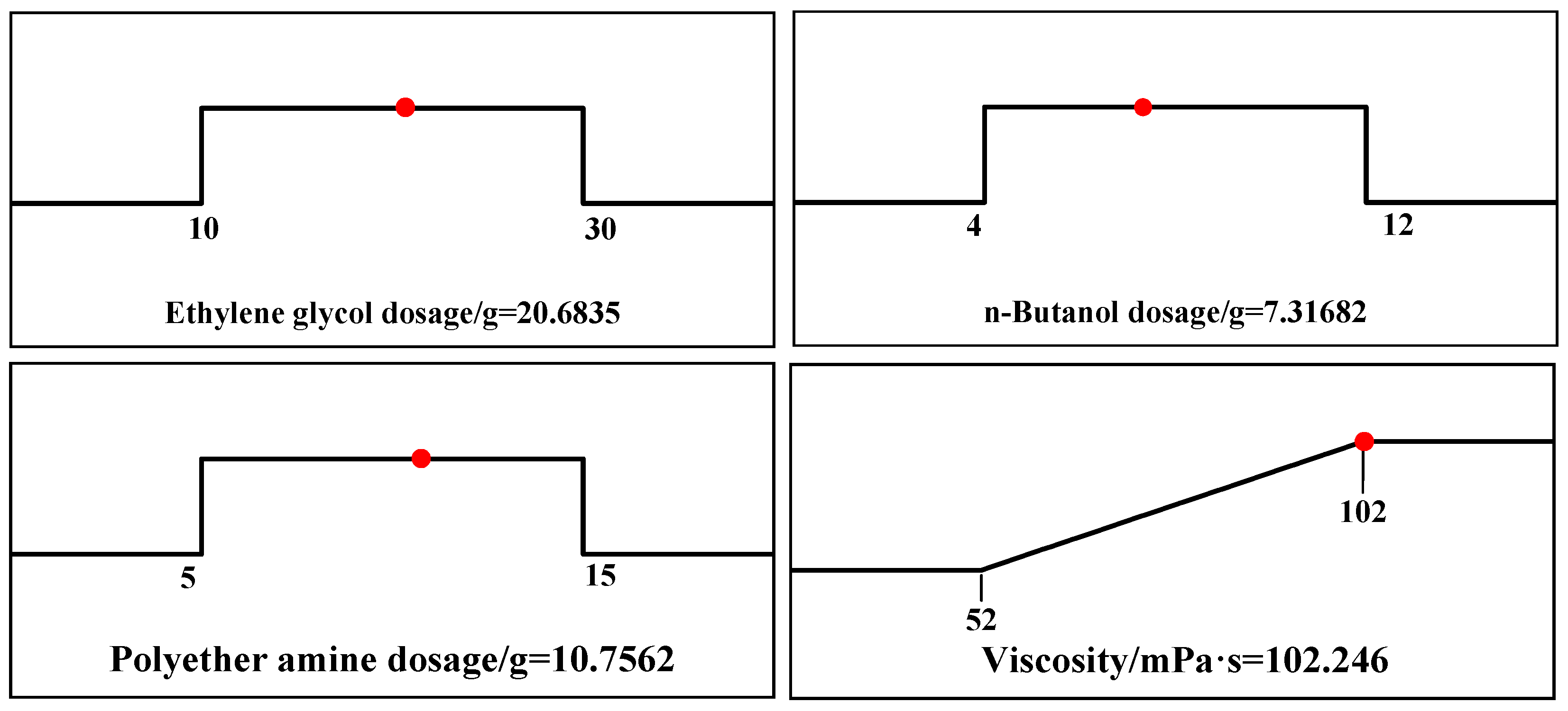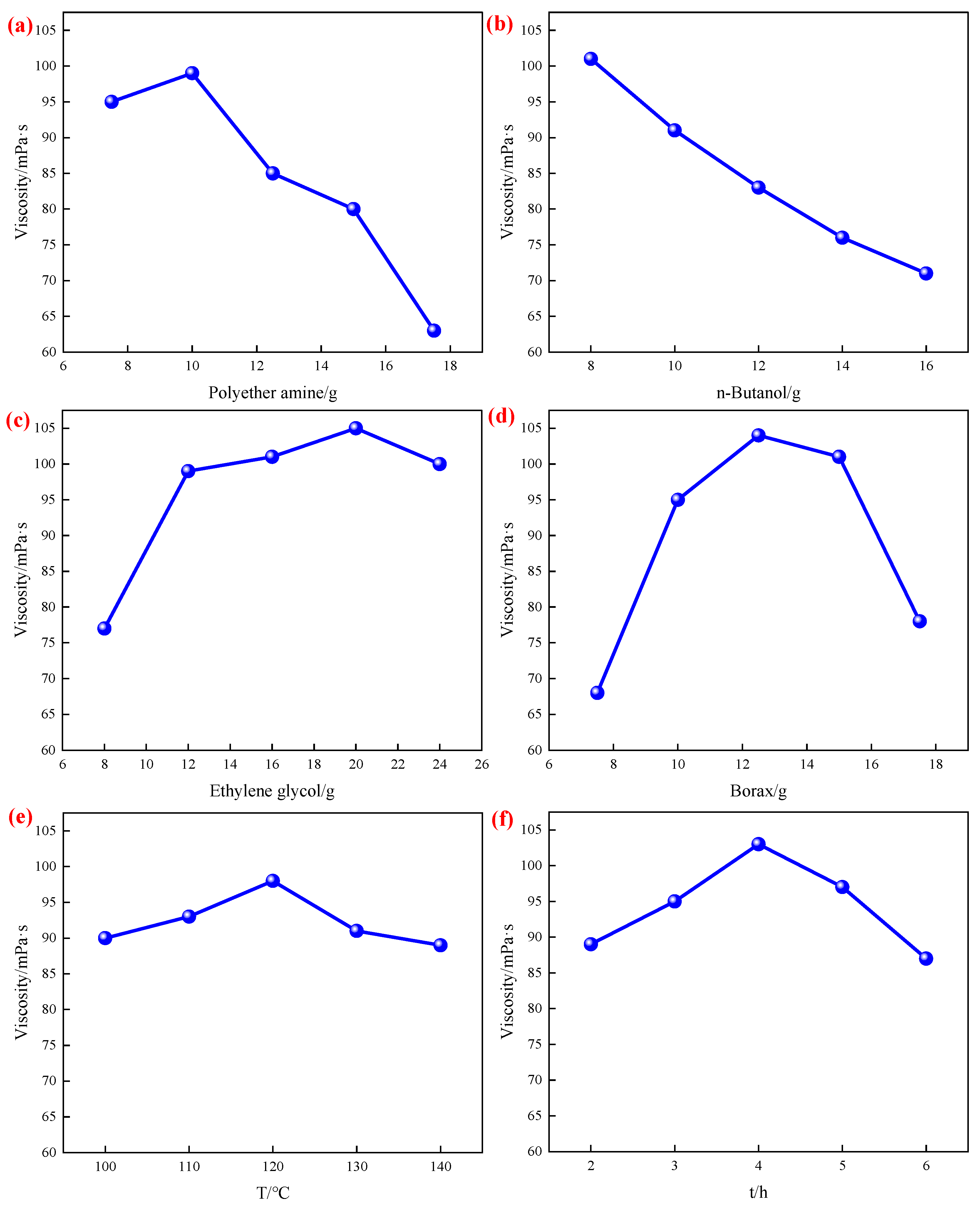 | Number | Ethylene Glycol/g | n-Butanol/g | Polyetheramine/g | Viscosity/mPa·s |