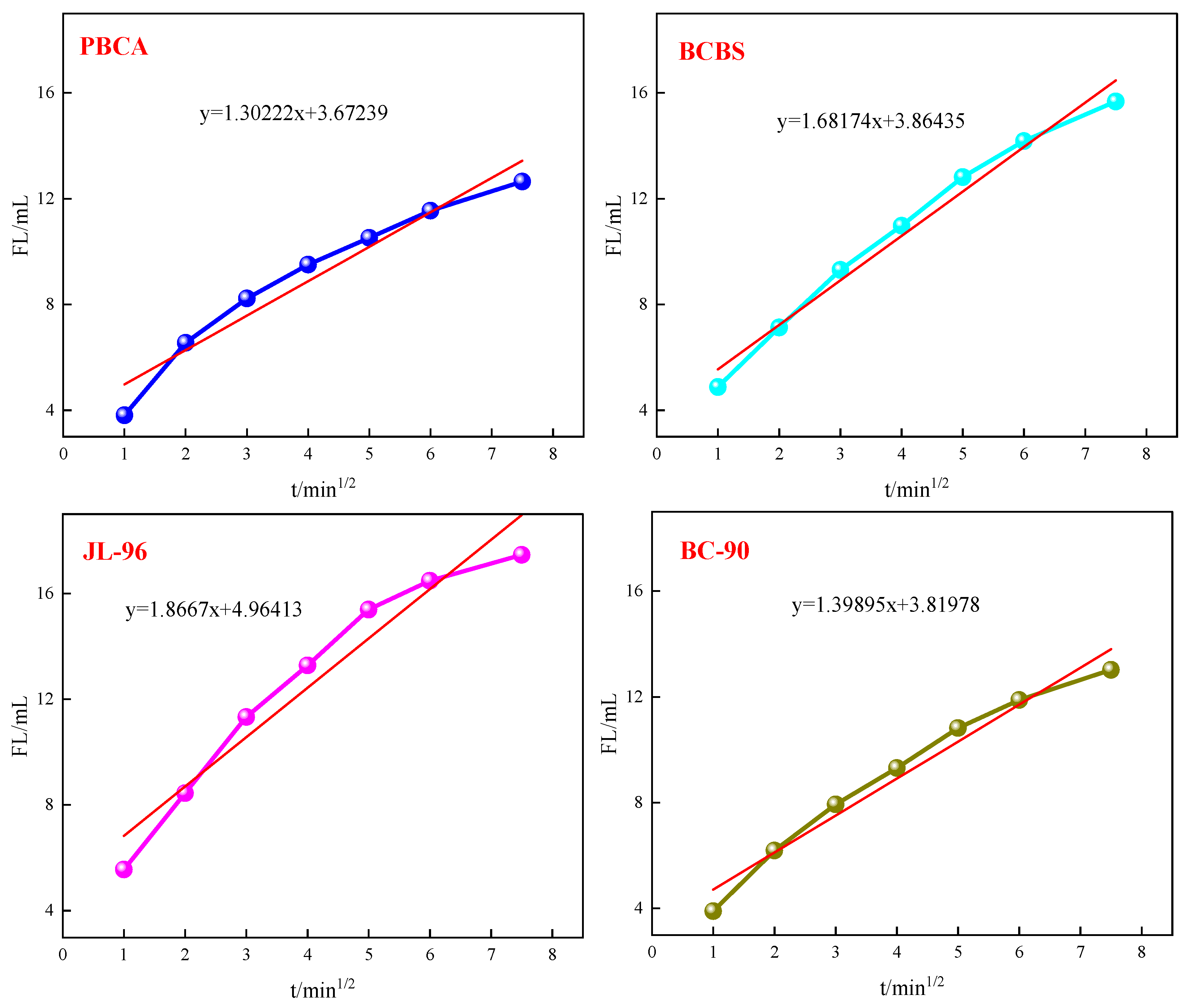 | Crosslinkers | Intercept/m3 | Slope/m3/s1/2 | Cross-Sectional Area/m2 | Wall Forming Filtration Coefficient/m/s1/2 | Initial Filtration /m3/m2 |