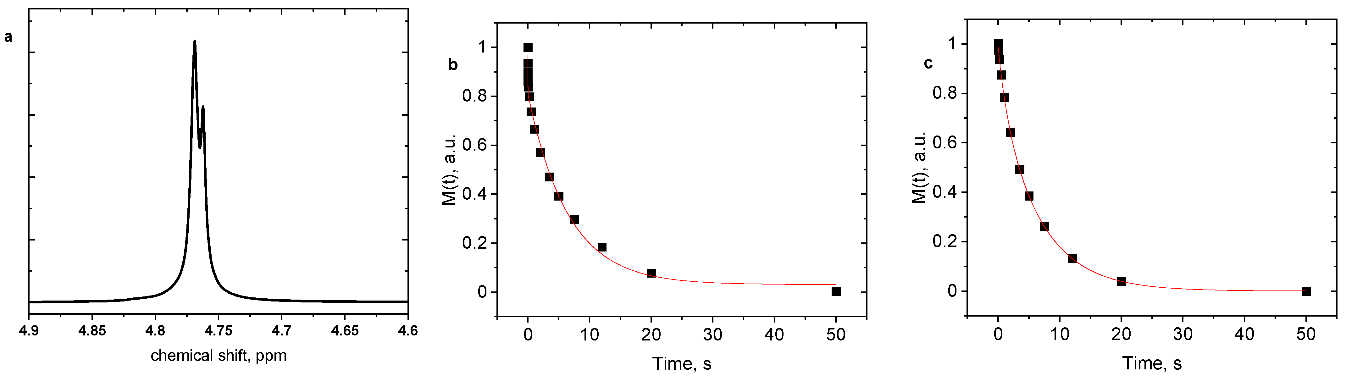 - Šťastná, J.; Hanyková, L.; Spěváček, J. NMR and DSC study of temperature-induced phase transition in aqueous solutions of poly(N-isopropylmethacrylamide-co-acrylamide) copolymers. Colloid Polym. Sci. 2012, 290, 1811–1817. [Google Scholar] [CrossRef]