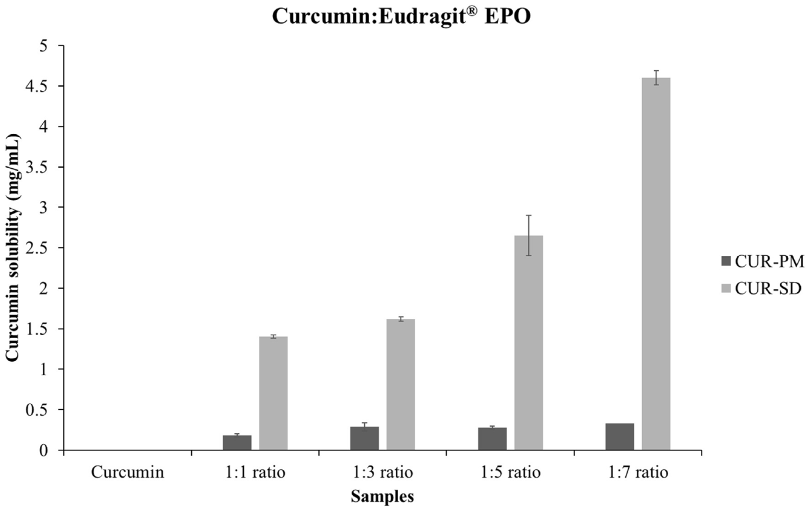 2.1.1. Solubility of Curcumin Solid Dispersions (CUR-SDs)