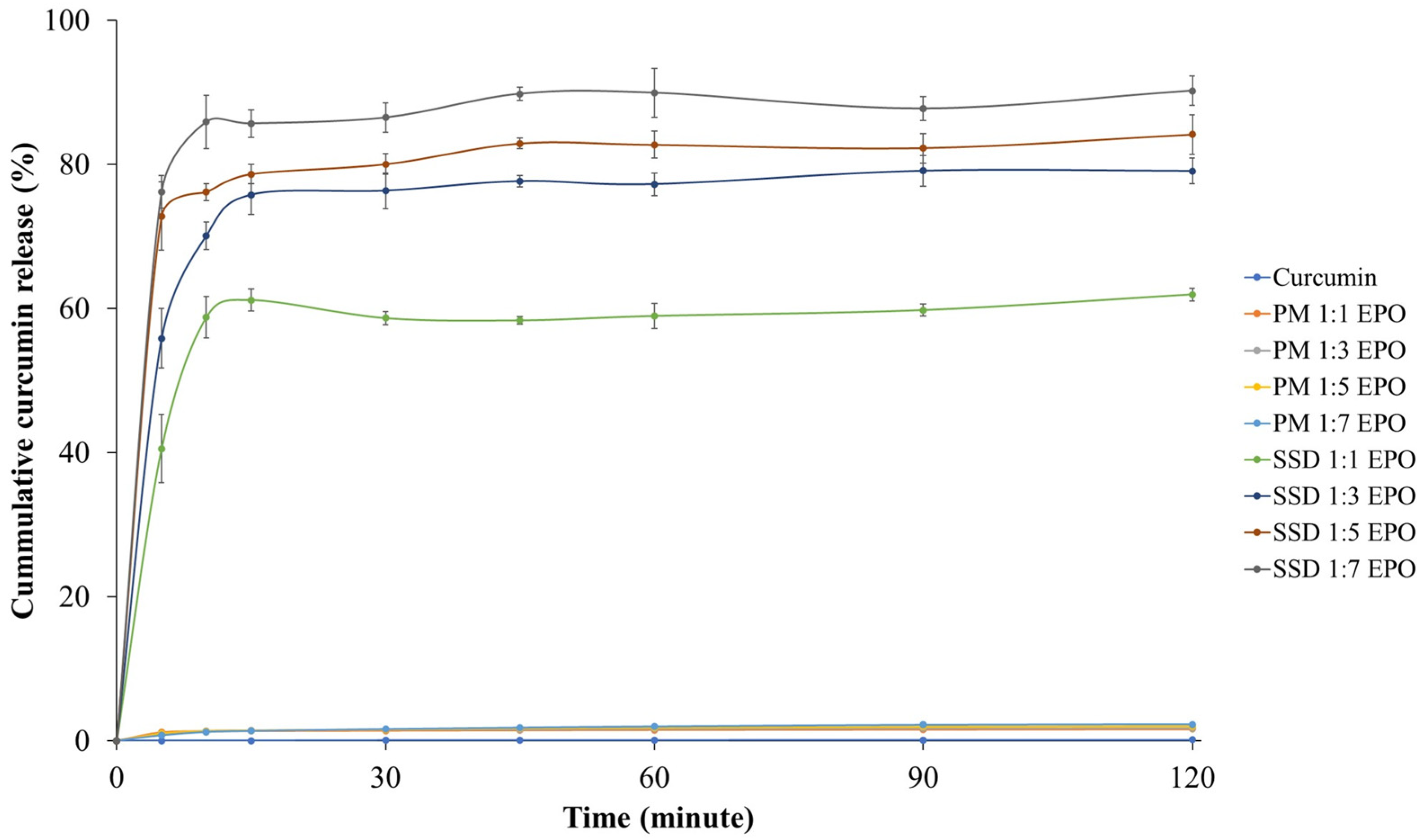 4.3.3. Dissolution Study of Curcumin Solid Dispersions