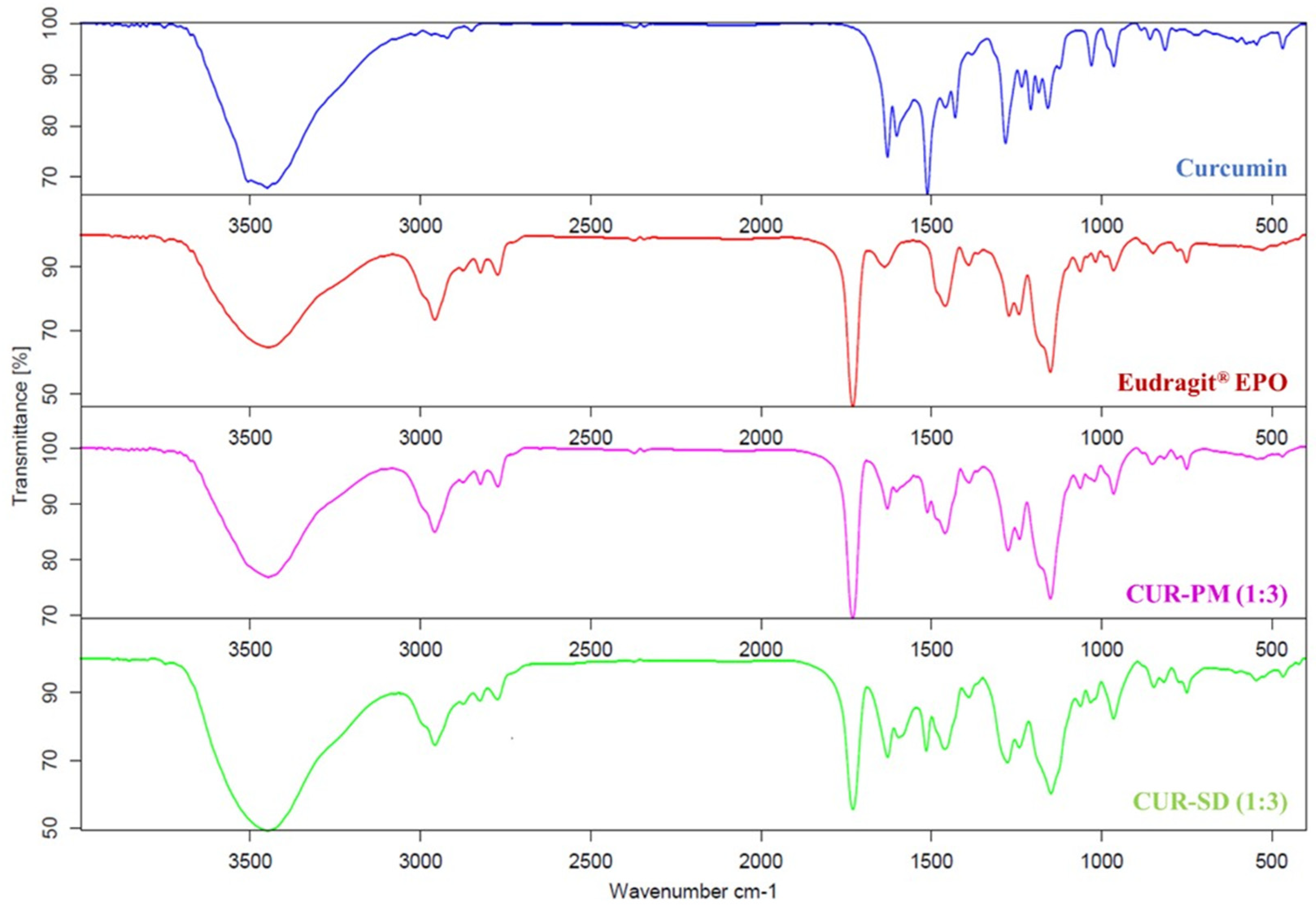 4.3.4. Physicochemical Characterization of Curcumin Solid Dispersion